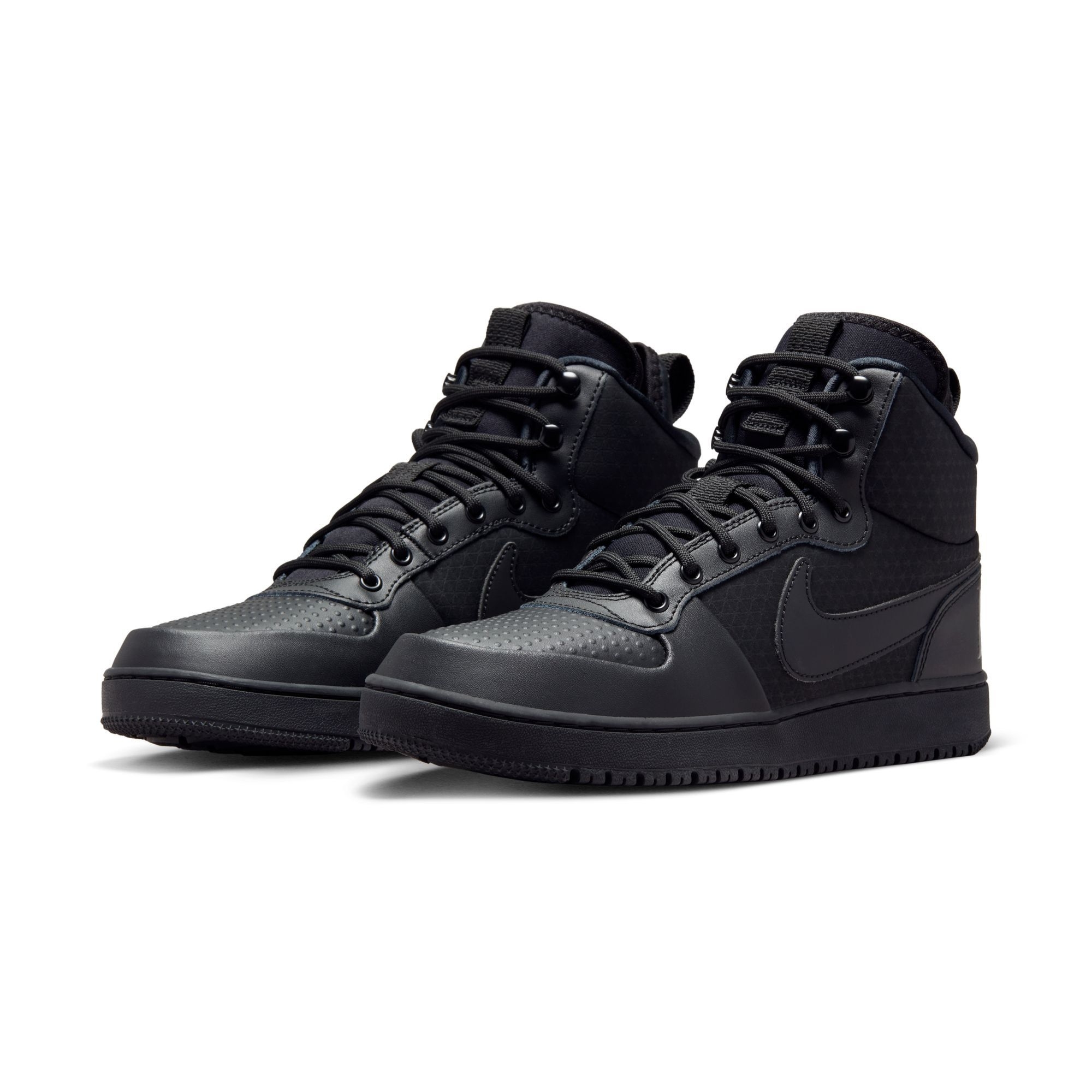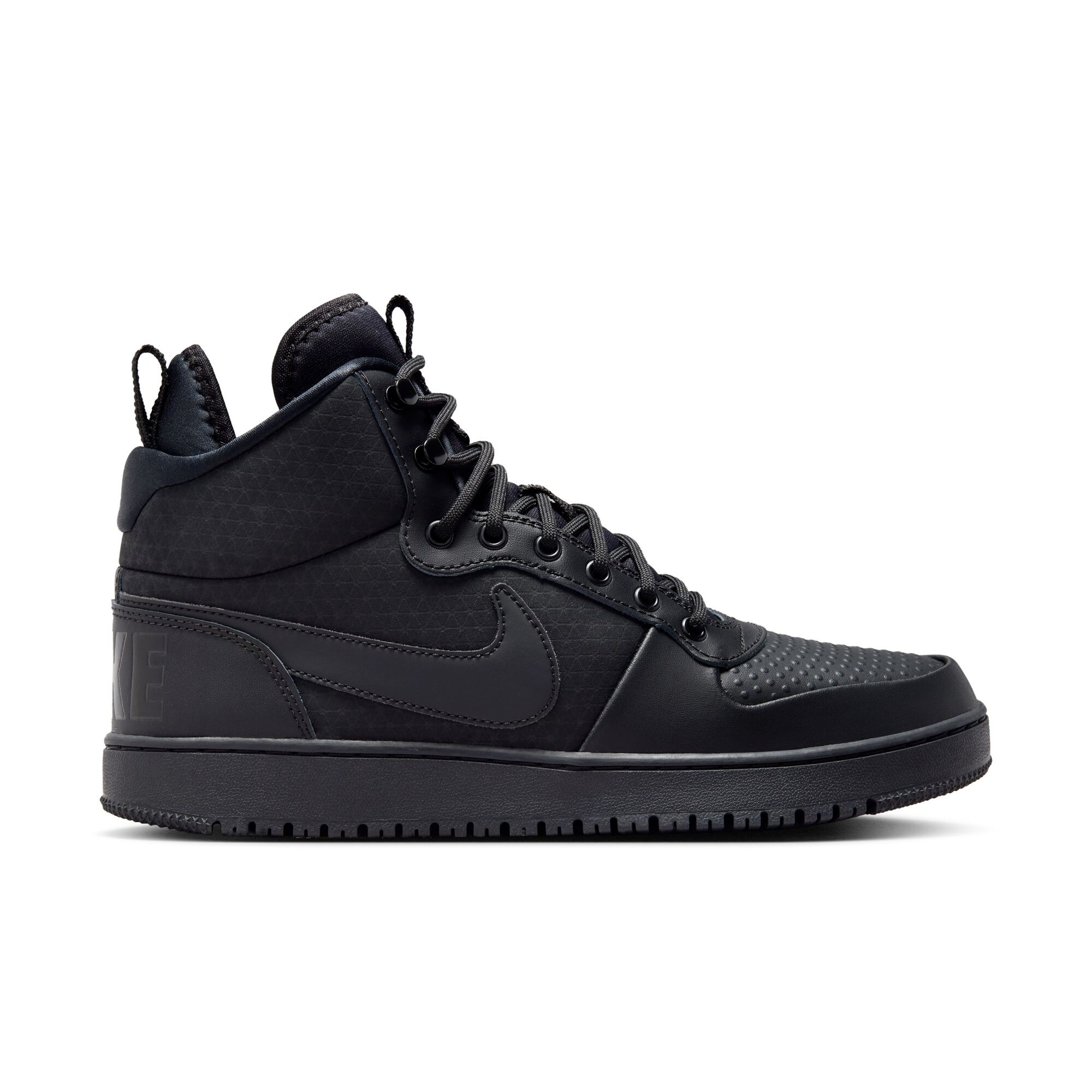 The Nike Court Borough Mid Winterized men's shoe is designed for everyday wear in cold weather and is perfect for urban conditions. The leather and neoprene upper provides durability and protection, while the matte textured leather toe enhances wearability and emphasizes the practical nature of the shoe.