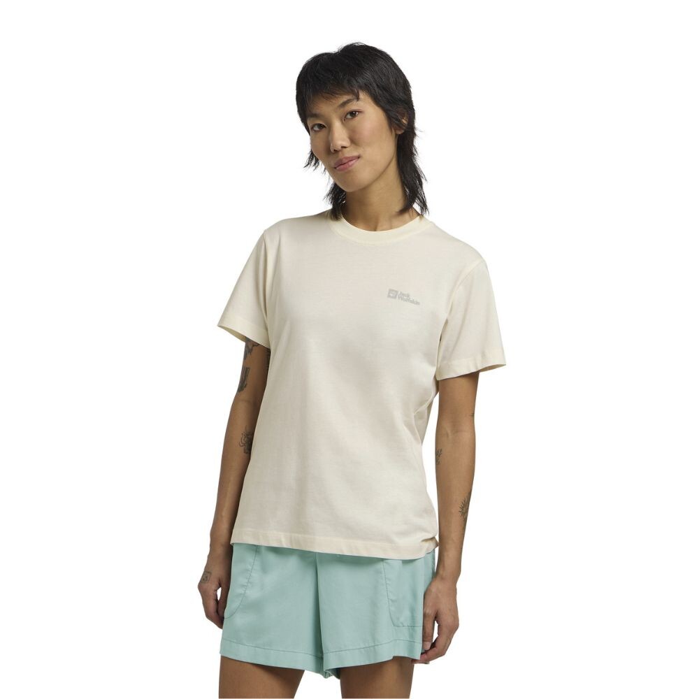 The Jack Wolfskin Essential T women's T-Shirt is a comfortable basic piece for everyday use and leisure, a versatile wardrobe staple made from environmentally friendly organic cotton.
