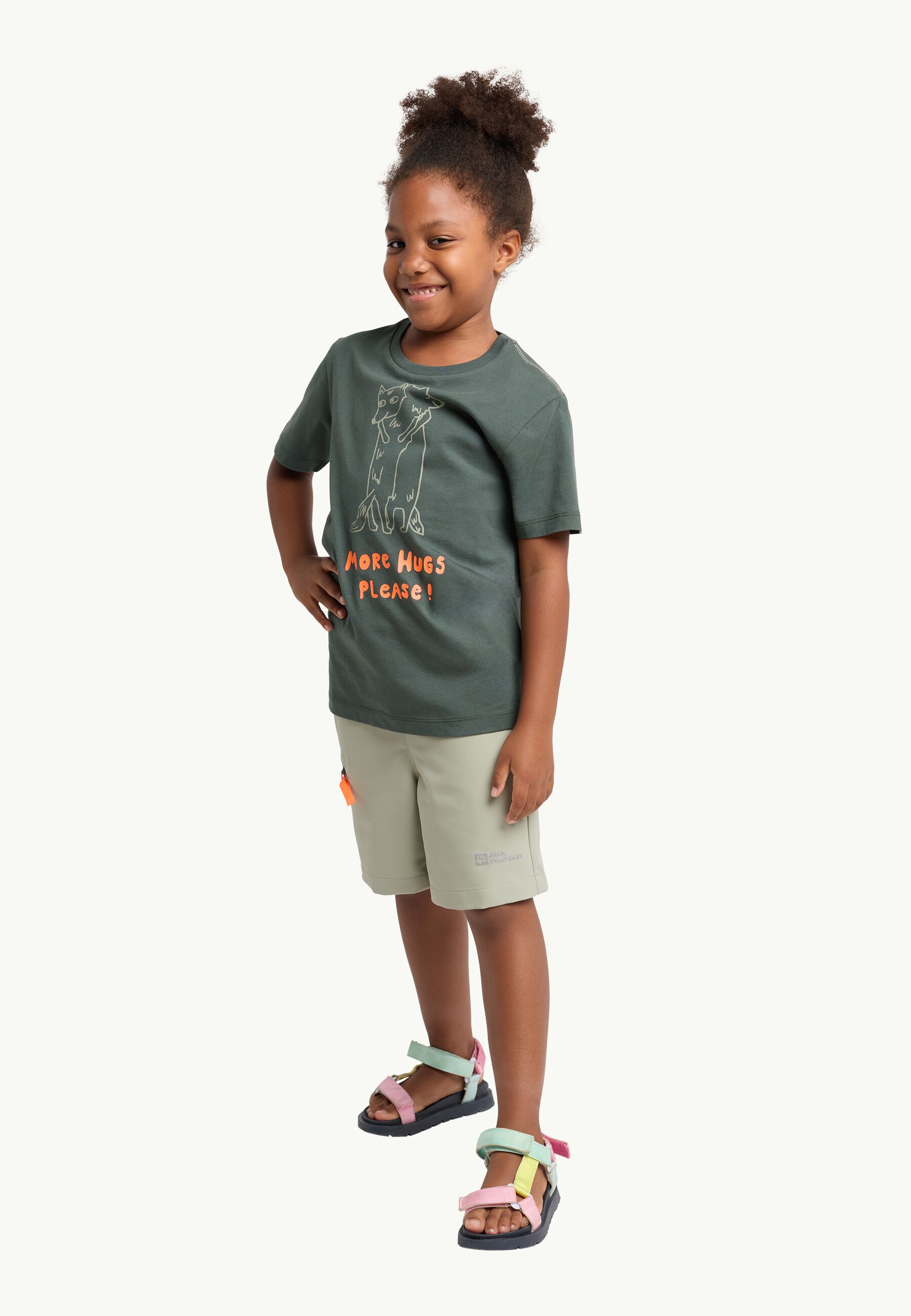read moreThe More Hugs Children's T-Shirt from Jack Wolfskin with a vibrant print is sure to be a favourite for your little one! Decorated with a cute and kind "More Hugs" graphic print, this t-shirt expresses the warmest of feelings.