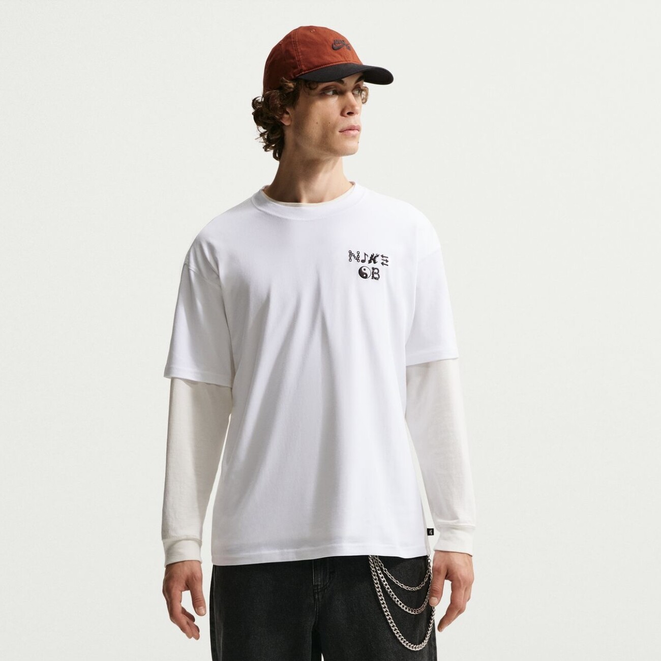 Midweight cotton fabric provides softness and reliable all-day comfort while maintaining its shape even with active use. Embroidered symbols on the chest add a subtle front detail, while the large collage-style graphic print on the back enhances the visual impact and highlights the creative aesthetic of the Nike SB line.