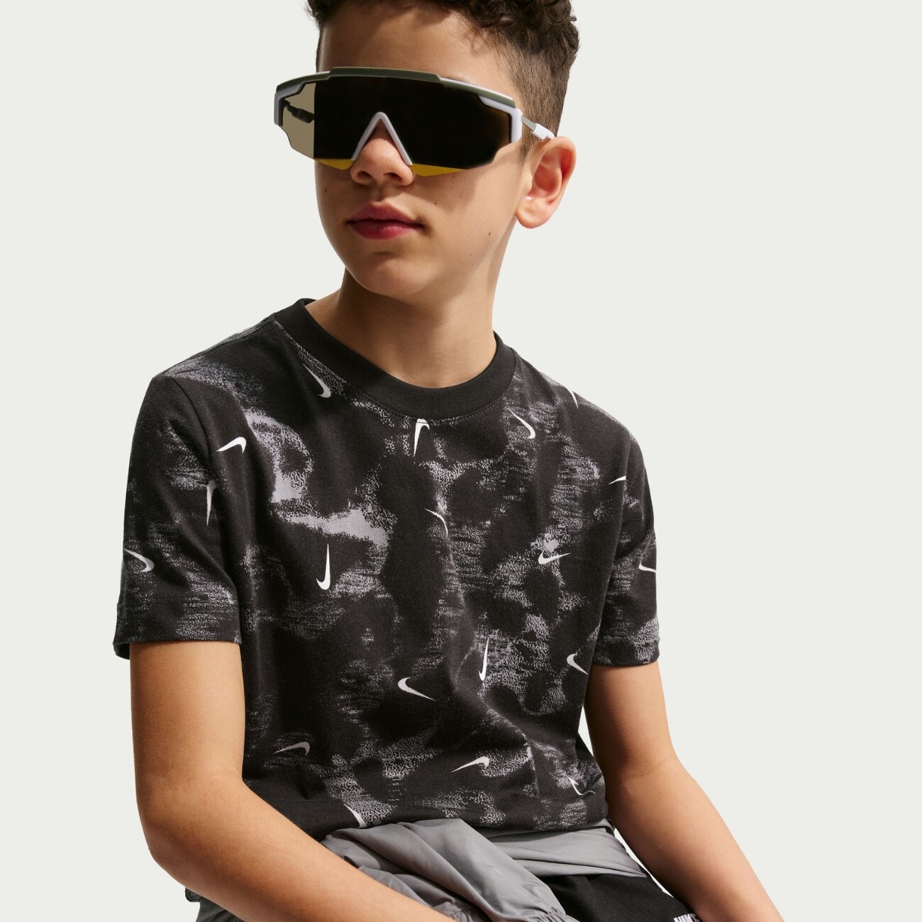The cotton fabric of optimal weight drapes softly and feels comfortable against the skin, ensuring all-day comfort. The all-over graphic print with a repeating Nike Swoosh logo creates a dynamic accent, highlights the signature style, and makes the piece visually expressive in any outfit.