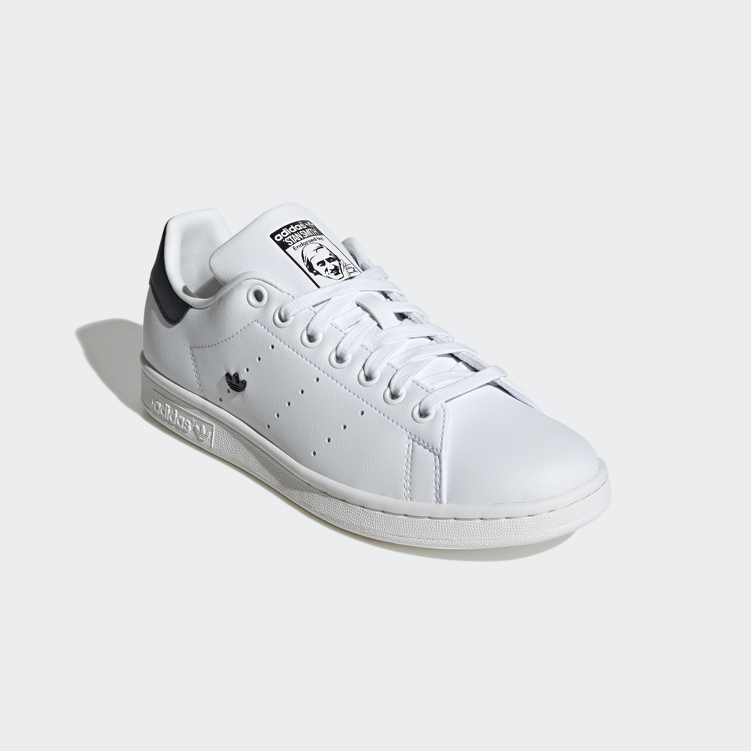 The shoes feature a painted portrait of Stan Smith (former American professional tennis player) and his signature on the tongue, emphasising their iconic status.
