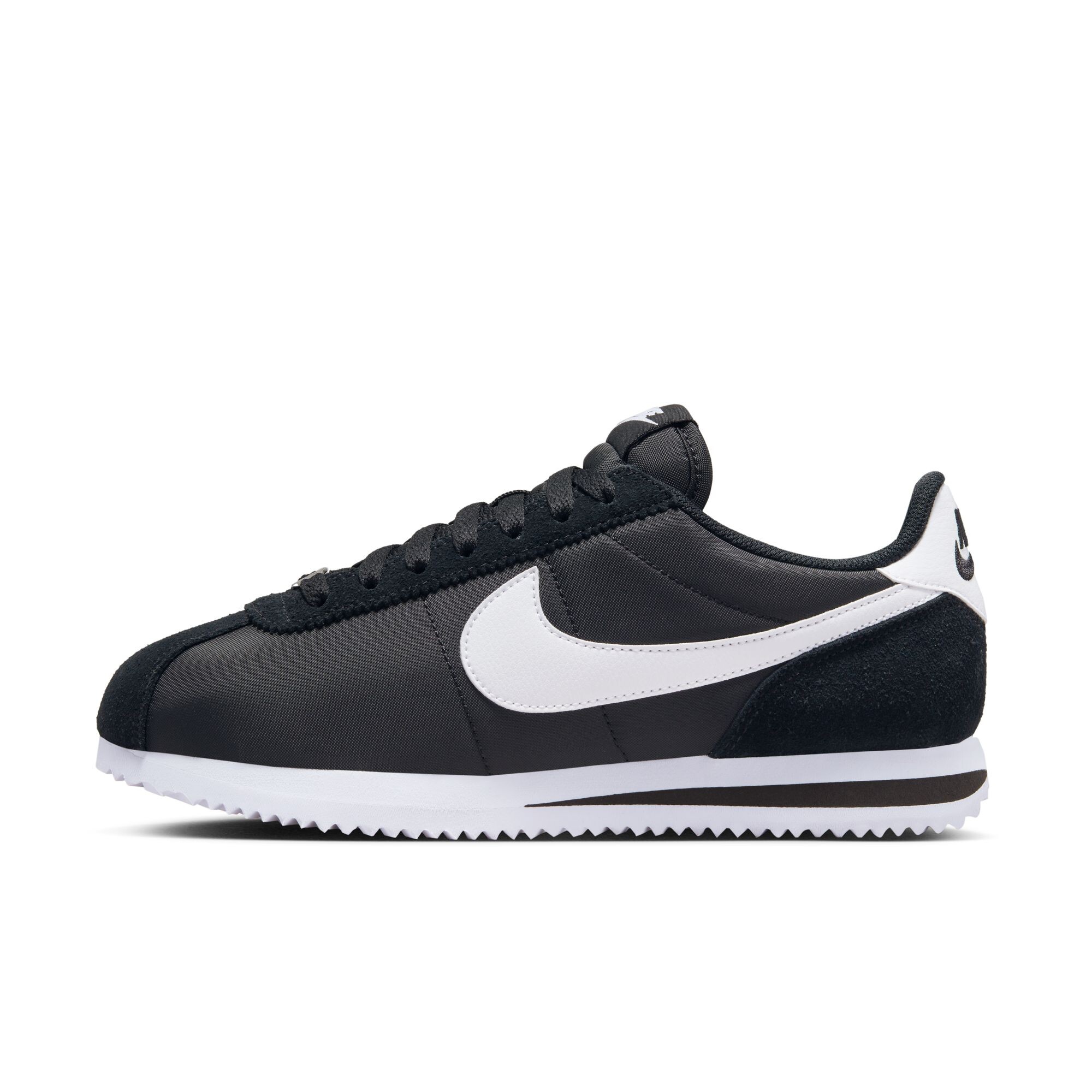 The rubber outsole with a classic herringbone pattern guarantees confident traction and gives the sneakers that retro chic that has become the hallmark of Cortez. A soft low collar and traditional lacing complete the look, ensuring a comfortable fit and everyday wearability. The signature Nike Swoosh logo in genuine leather with a grainy texture adds a premium touch, emphasising the status of this iconic model.