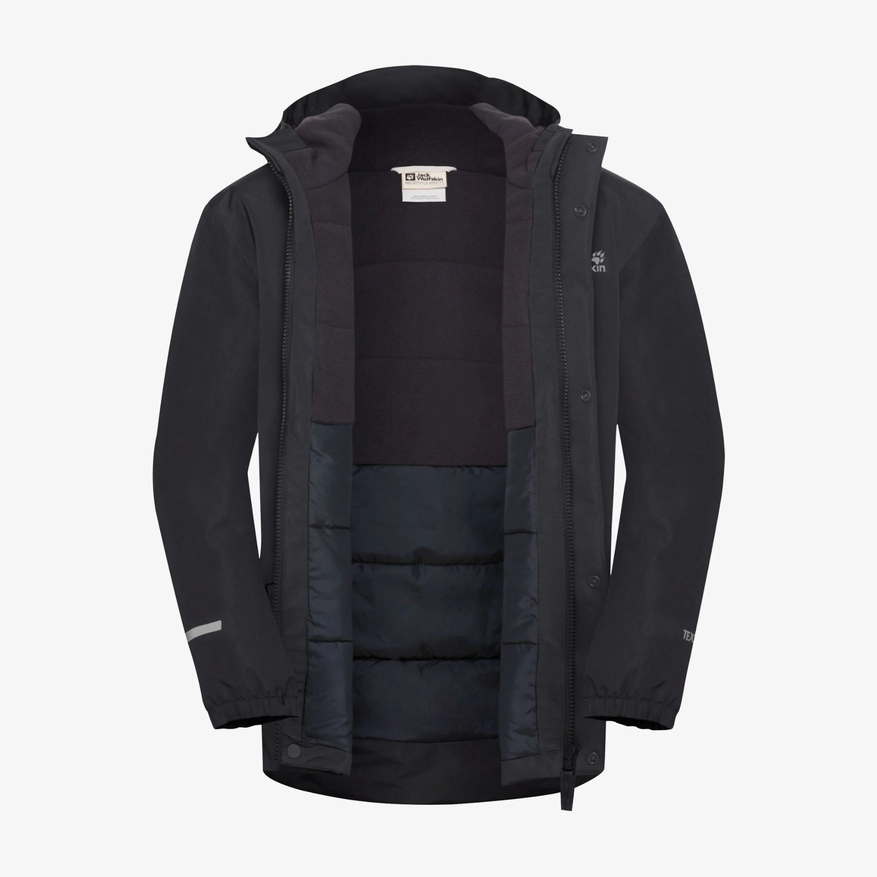 Reflective elements on the sleeves and back increase the child's safety in the dark, and the printed Jack Wolfskin logo on the chest emphasizes the quality and recognizable style of the brand.