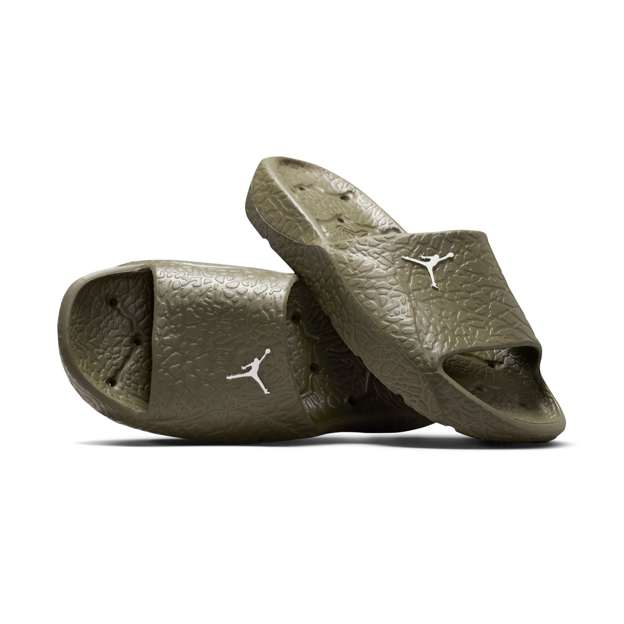 The contoured footbed gently supports your foot, creating a stable feel. The raised Elephant print on the footbed enhances traction while adding a signature Jordan touch. Drainage holes throughout the outsole help channel water away quickly, while the herringbone tread pattern improves grip on wet surfaces. Jumpman branding completes the design with a recognizable finishing detail.