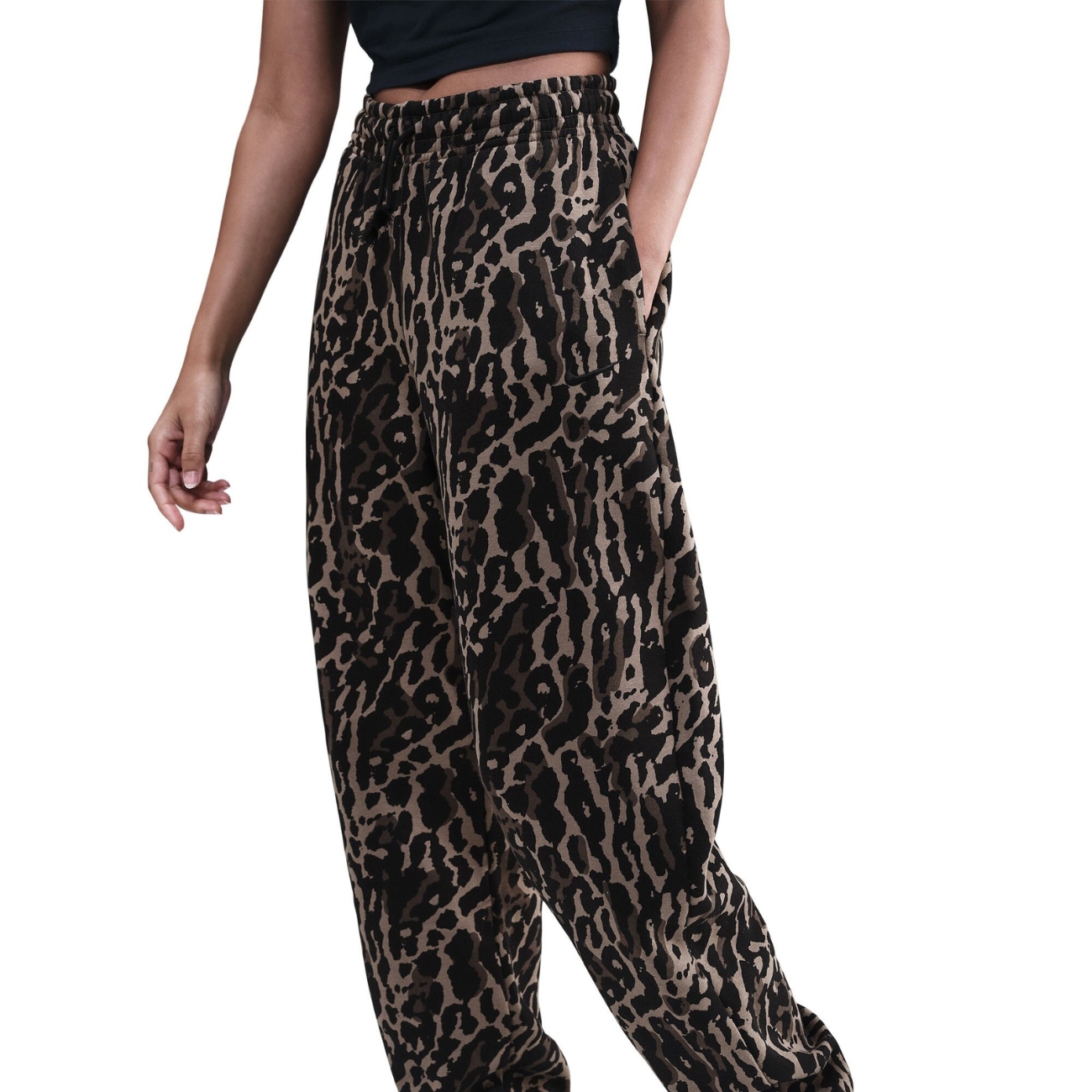 The high rise and oversized fit create a trendy silhouette and a comfortable fit through the hips, while the elastic drawstring waistband allows for easy adjustment. A unique all-over print adds personality, and the embroidered Nike Swoosh logo highlights the brand's signature style.