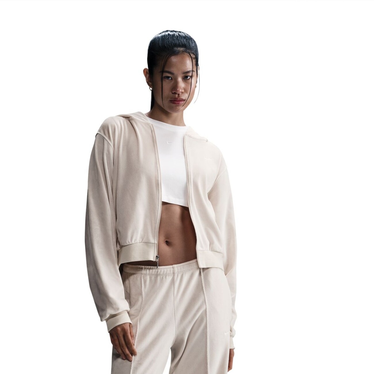 The Nike Sportswear Chill Knit Loose Velour Full-Zip Hoodie is the epitome of cozy and stylish, and will captivate you from the moment you lay your hands on it. Plush, mid-weight velour fabric feels soft against your skin while providing great shape and warmth, creating the perfect balance between cozy and lightweight. And despite its warm, cozy nature, the hoodie retains a sophisticated, elegant feel thanks to the texture and lustre of the velour.