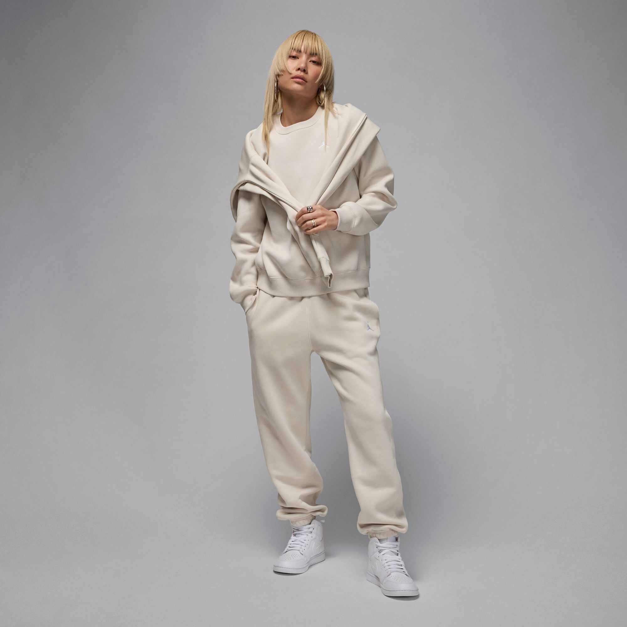 The Jordan Brooklyn Fleece Crew-Neck Women's Sweatshirt is the perfect combination of comfort, style, and casual elegance that will keep you warm on chilly days. Made from soft fleece, it feels great on both sides: the outside of the fabric has a smooth, neat surface, and the inside has a gentle brushed finish that creates a feeling of warmth and comfort. This material perfectly retains heat without weighing down the product, and allows you to enjoy comfort in any conditions.