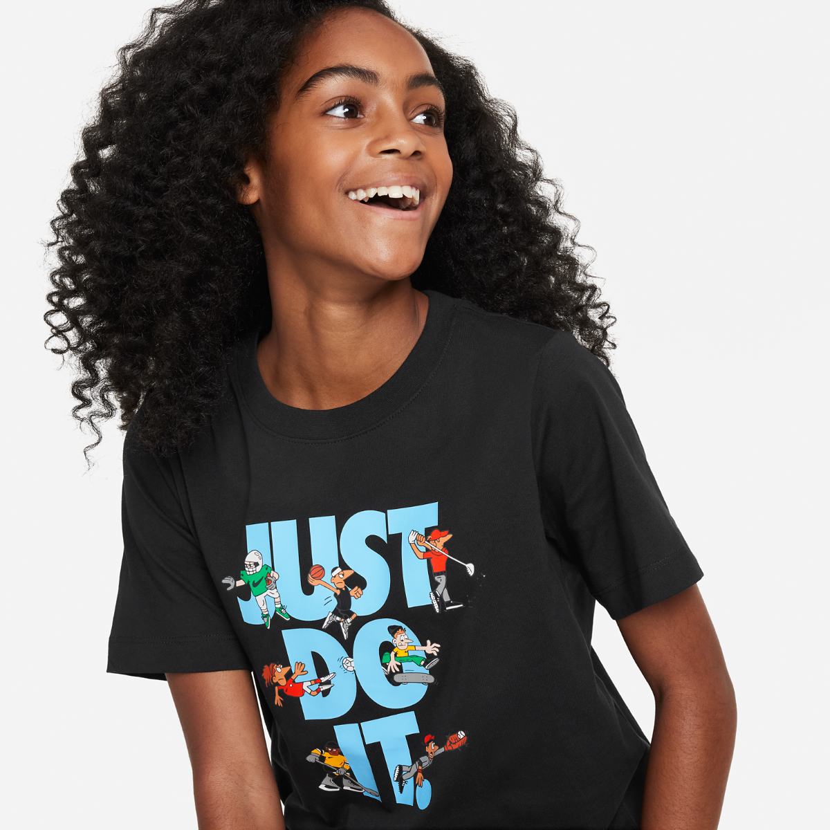 Bring bright colours to your child's look with the Nike Sportswear Just Do It Multi Sport T-shirt for kids. The playful "Just Do It" print with cartoon characters makes the T-shirt attractive and adds a touch of fun to your...