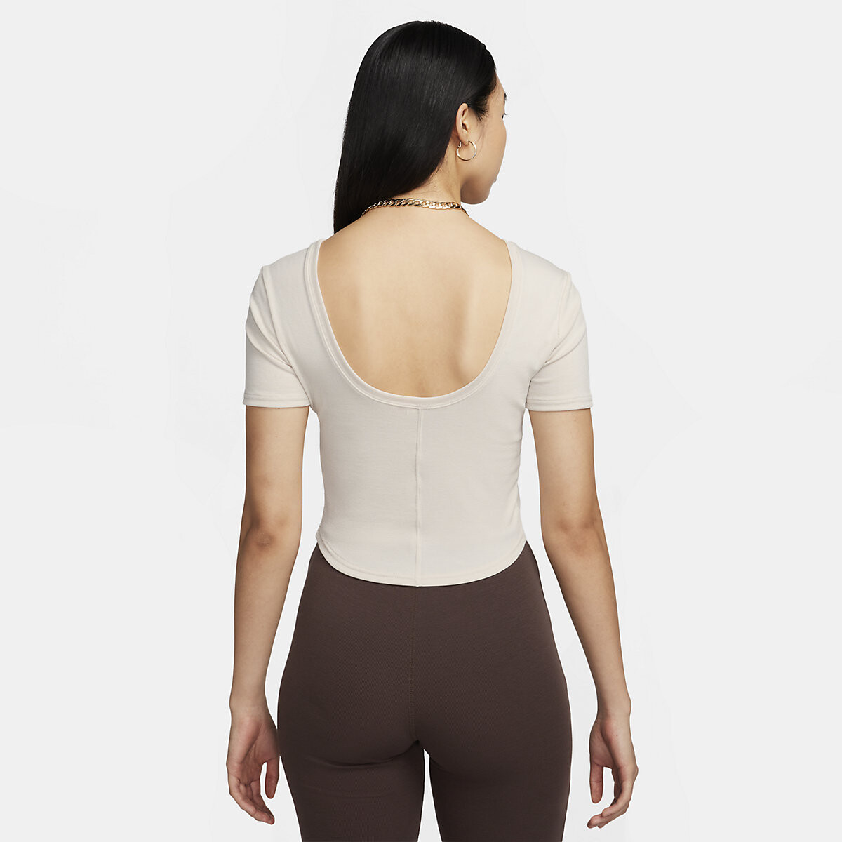 The rounded hem adds sophistication to your look, allowing you to easily pair the T-shirt with a variety of wardrobe pieces. The low back neckline gives the model a sophisticated and unique look, emphasising femininity and adding zest to your look. The T-shirt also features an embroidered Swoosh logo on the chest.