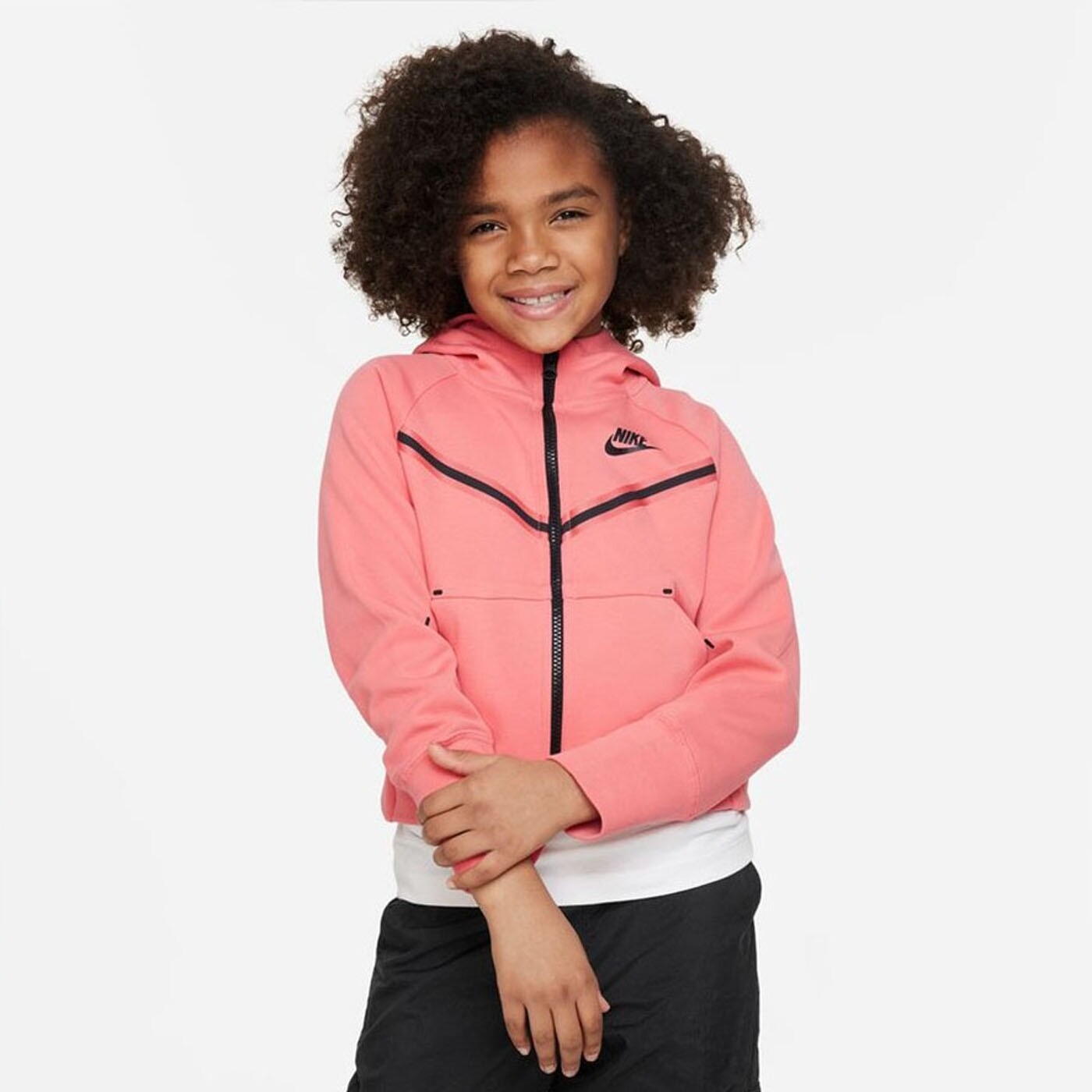 Give your little girl incredible comfort and style with the Nike Sportswear Tech Fleece Full-Zip Hoodie. This hoodie is made from a high quality fleece that will be a reliable companion on cold days. It's got everything you need: it's warm, soft and totally windproof.