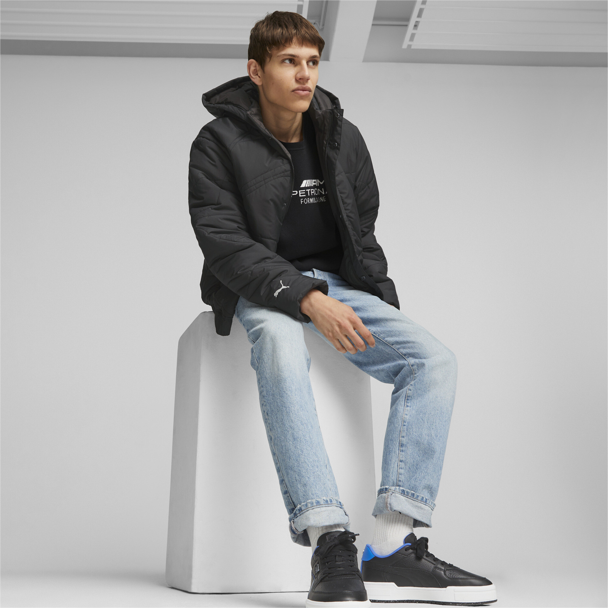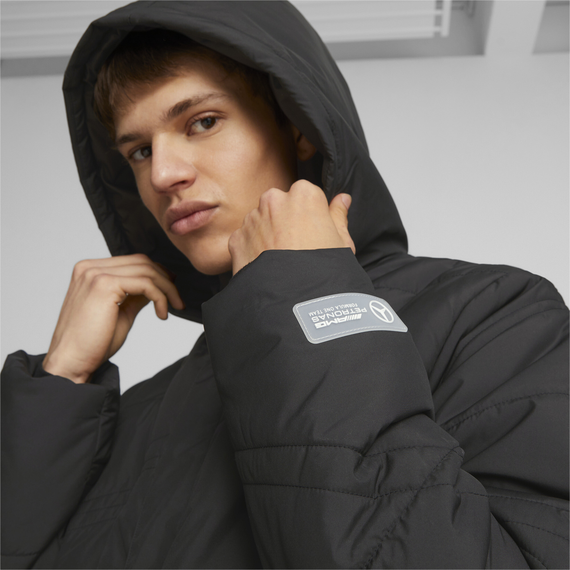The Puma Mercedes-AMG PETRONAS Formula 1 Padded Jacket is the perfect combination of premium design, innovative technology and true racing spirit. Inspired by the Mercedes-AMG PETRONAS Formula One team, it's designed for men who value comfort, style and protection in all weather conditions.