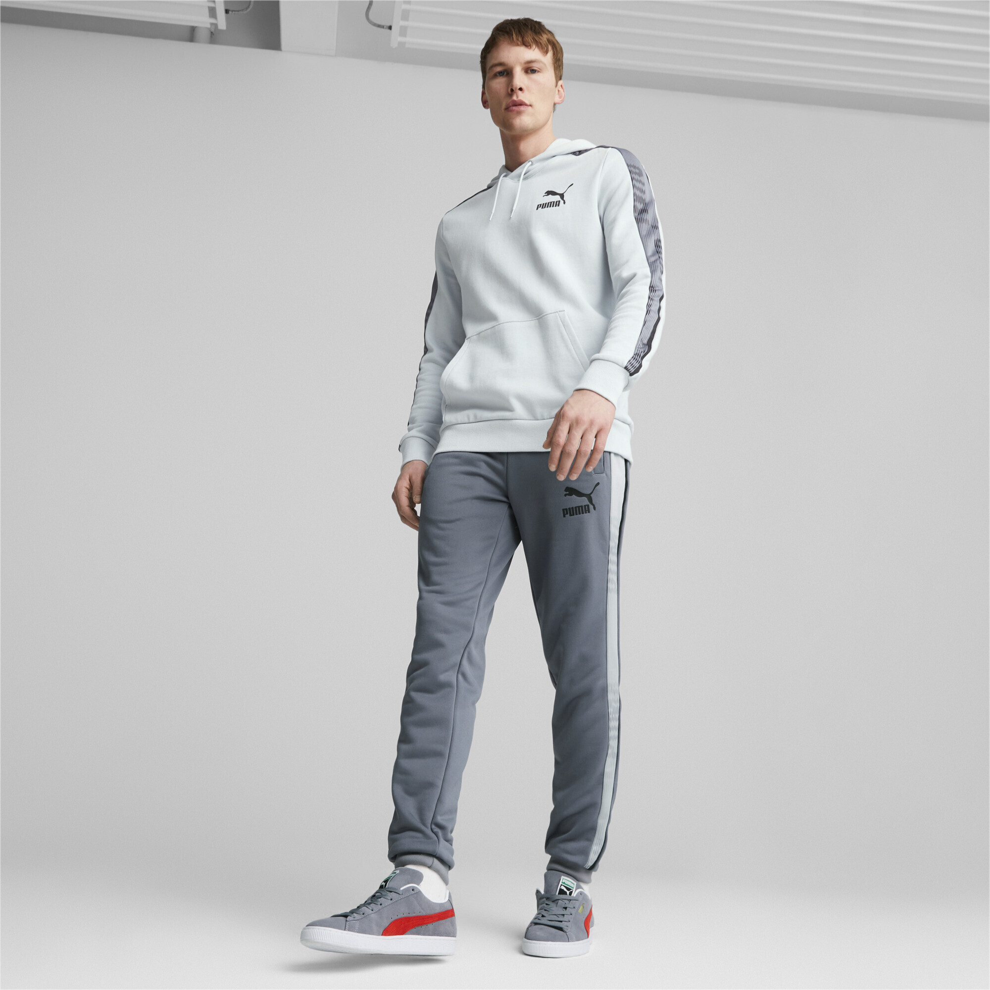 The Puma T7 Sport PT track pants are designed for those who value comfort and dynamic style. The slim fit emphasizes the silhouette, creating a sleek and modern look, while the iconic T7 side panels with a graphic print add character and make the style instantly recognizable.