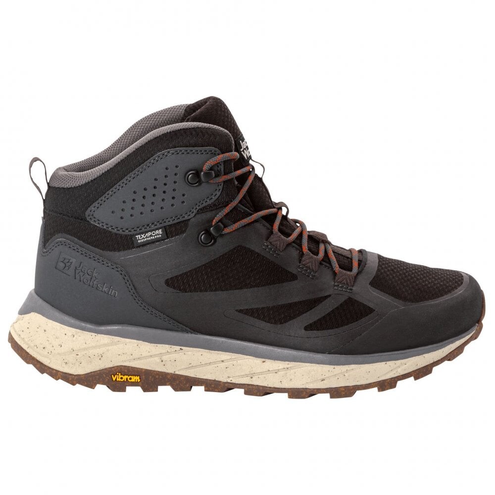 Jack Wolfskin Terraventure Texapore Mid boots are designed for men who want to feel confident and protected in any weather. These are not just trekking shoes, but a real ally in travel - from city routes to mountain trails. The upper part is made of a combination of durable materials, including recycled synthetic textiles, which are durable and wear-resistant. The TEXAPORE ECOSPHERE PRO membrane provides absolute waterproofness and at the same time remains highly breathable, creating an optimal microclimate inside the boot. Your feet stay dry even during prolonged rain, and comfort is maintained during any activity.