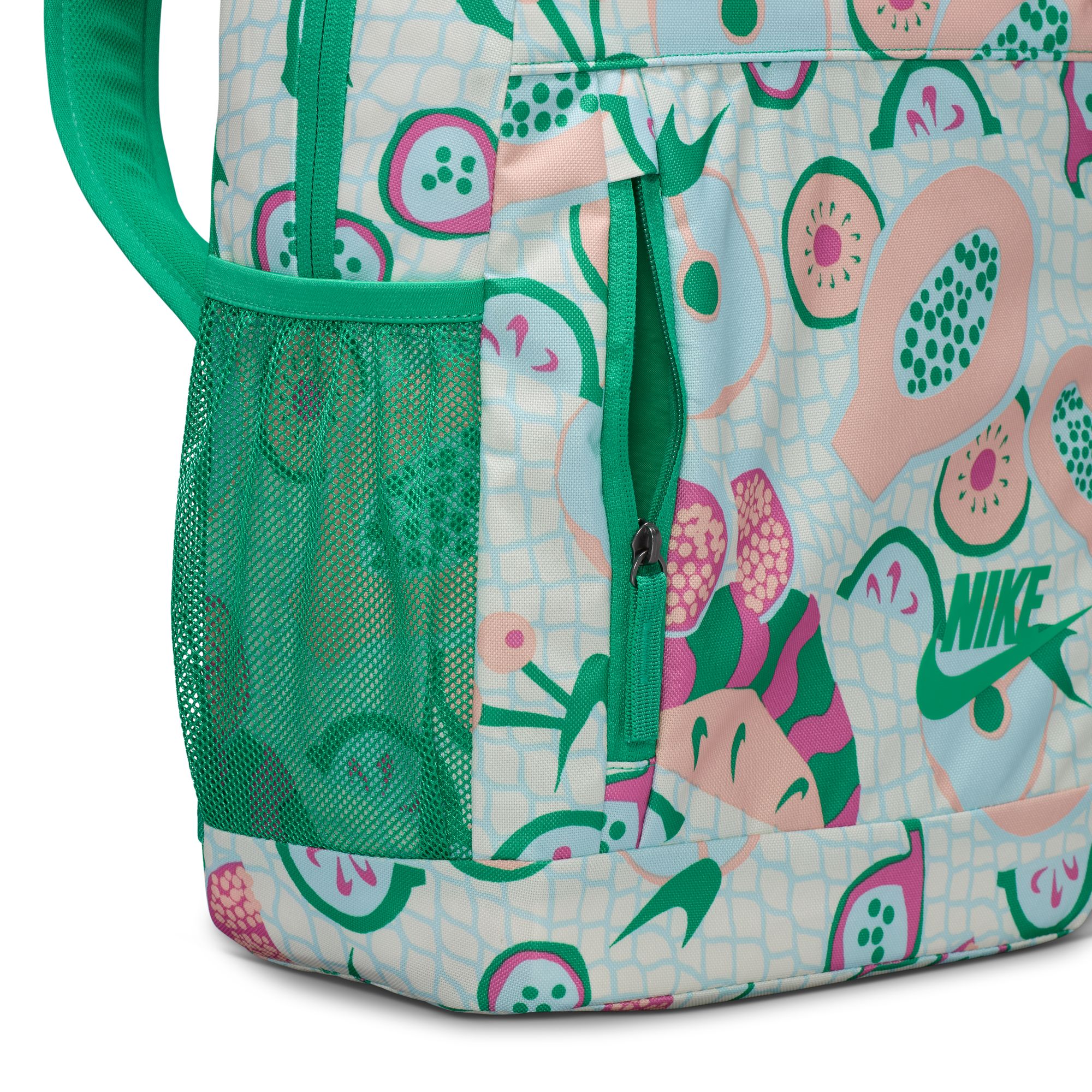 Its large main compartment with two-way zip makes it easy to fit books, laptop and other important items, keeping things tidy and quickly accessible. Additional front and side pockets are perfect for smaller items - be it keys, charger or water bottle - making the backpack truly functional and thoughtfully designed. Of particular note is the removable pencil case that attaches to the outside, allowing you to conveniently keep small items separate from the rest of your belongings. Padded adjustable straps ensure a comfortable fit, while the mesh back panel keeps your back ventilated to keep your back from overheating. The stylish graphic print and neatly printed Nike logo give the backpack a modern and distinctive look that will complement any look.