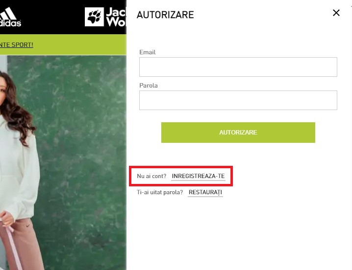 Pentru a plasa prima dvs. comandă pe site-ul SPORT SPIRIT, trebuie să vă înregistrați mai întâi pe pagina principală.