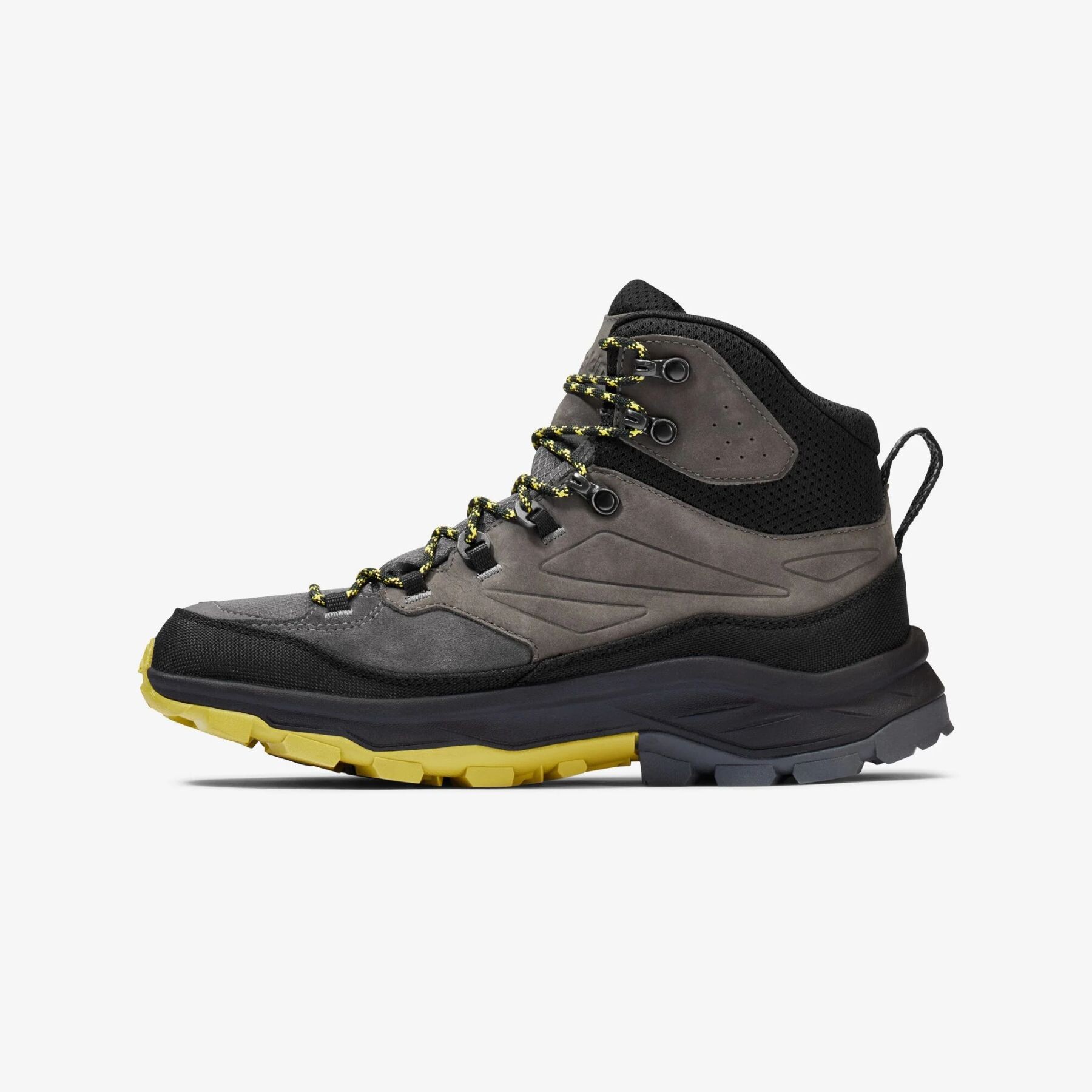 Talpa exterioară VIBRAM din cauciuc rezistent oferă aderență excelentă pe stânci ude, sol afânat sau poteci alunecoase, pentru stabilitate sigură în orice mediu. Cârligele și buclele în formă de D metalice distribuie uniform tensiunea șireturilor, garantând fixarea sigură a piciorului.