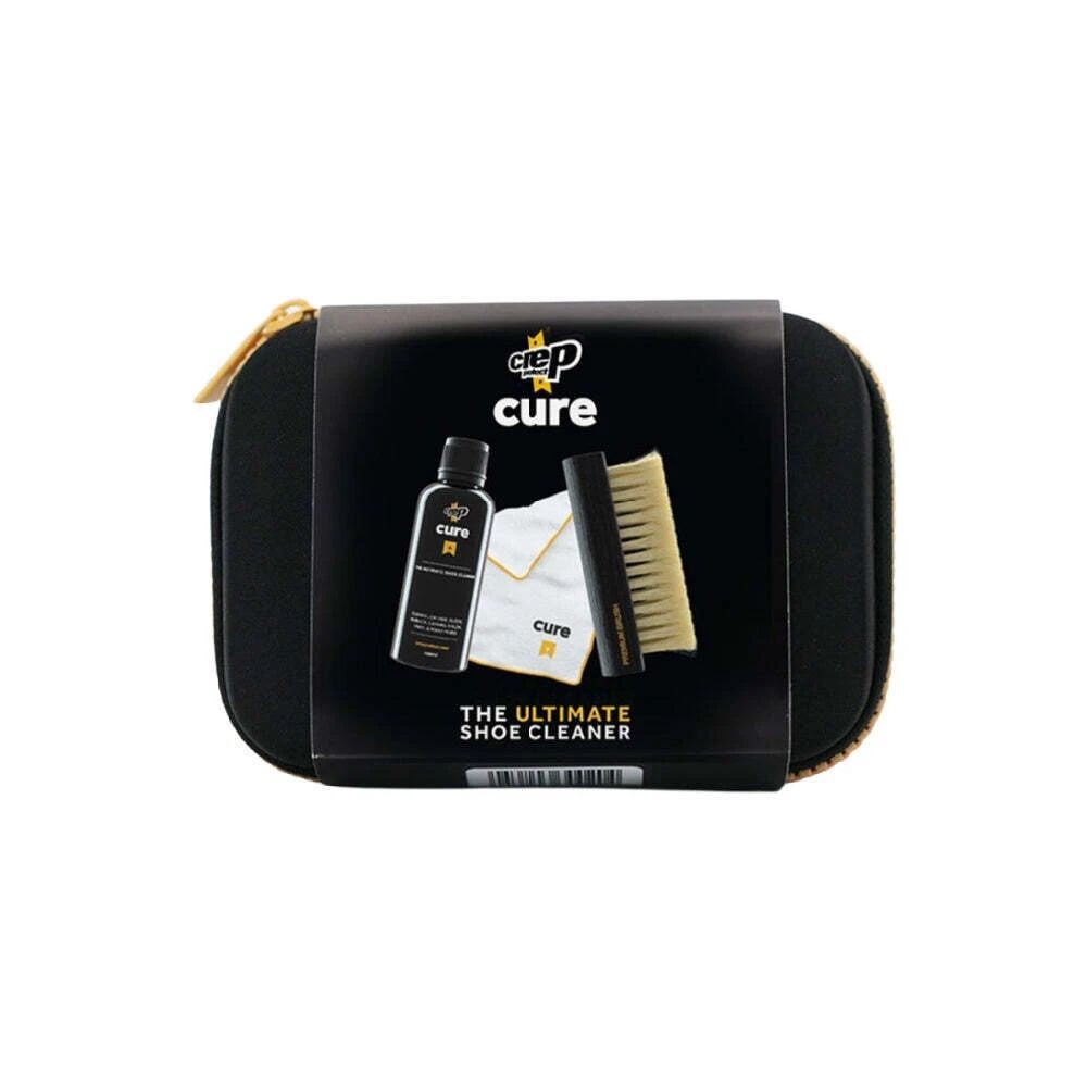 Cutia compactă și stilată conține tot ce aveți nevoie pentru o îngrijire completă. Soluția de curățare Cure într-o sticlă comodă de 100 ml, elimină eficient praful, murdăria de pe stradă și urmele de la uzura zilnică, fiind în același timp atât de delicat încât este potrivit chiar și pentru cele mai sensibile materiale. Peria moale curăță delicat chiar și cele mai sensibile suprafețe, iar prosopul din microfibră completează îngrijirea, lăsându-vă încălțămintea fără urme.