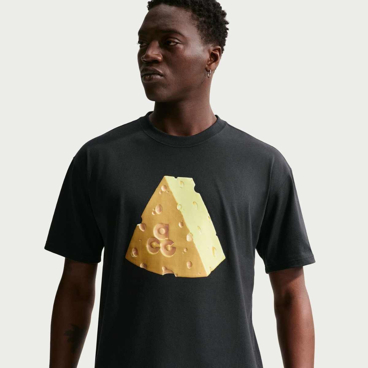 Structura respirabilă a materialului menține un microclimat optim, iar construcția bine gândită face tricoul potrivit pentru purtare îndelungată. Imprimeul grafic de pe piept, cu imaginea unei bucăți de cașcaval și inițialele ACG în centru, adaugă un accent jucăuș și memorabil, subliniind caracterul creativ al designului.