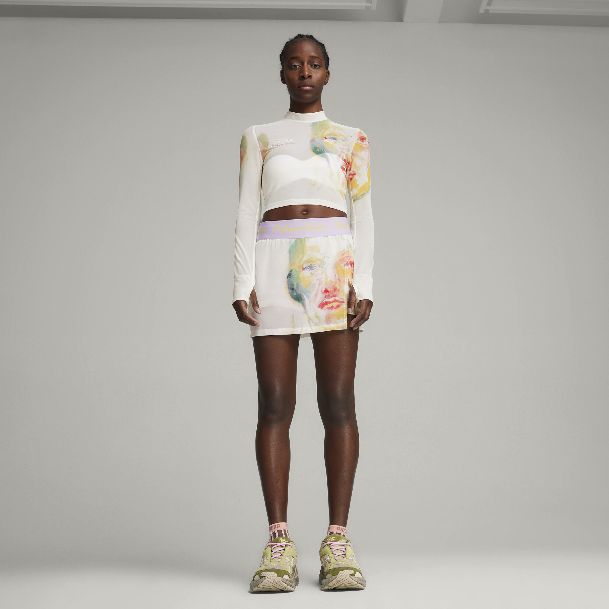 Tricoul cu mânecă lungă din colecția Puma x KidSuper este nu doar un articol de bază în garderobă, ci un detaliu expresiv care dă tonul întregului look. Inspirat de estetica fotbalului și adaptat într-un stil feminin modern, acesta vă subliniază individualitatea, combinând confortul și un stil vizual îndrăzneț.