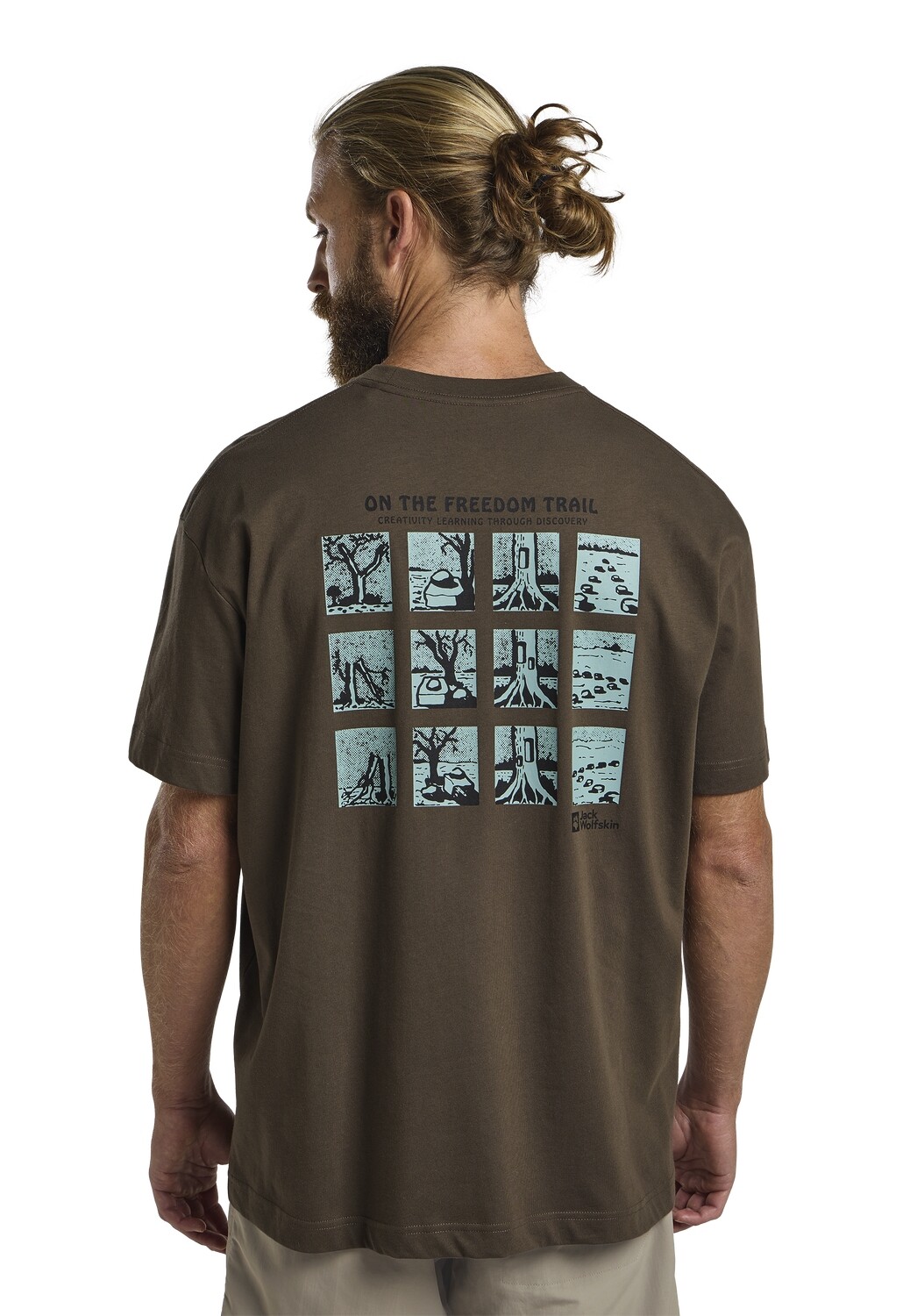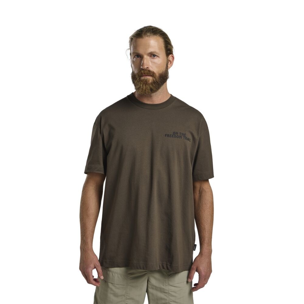 Fabricat din bumbac organic 100%, nu numai că este incredibil de moale pe corp, dar și permite pielii să respire chiar și în cea mai fierbinte zi. Țesătura plăcută la atingere, ușoară și ecologică face din acest tricou o alegere ideală pentru purtarea de zi cu zi. Croiala largă asigură o potrivire relaxată, în timp ce gâtul rotund cu nervuri adăugă un aspect finit. Inscripția „On The Freedom Trail” imprimată pe piept evocă o sete de aventură, în timp ce imprimeul grafic îndrăzneț cu motive de natură pe spate inspiră spre noi trasee și cucerirea de noi vârfuri.