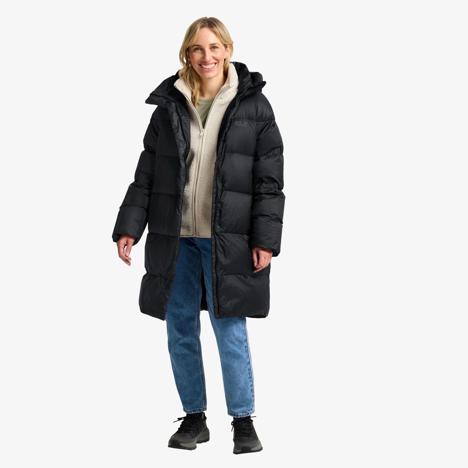 Partea superioară este realizată din țesătură rezistentă tip ripstop cu tehnologia TEXASHIELD PRO, care protejează fiabil împotriva vântului, respinge apa și rămâne respirabilă. Umplutura din puf de rață certificat RDS, cu puterea de umplere 700 cuin, oferă o izolație excelentă, fiind în același timp ușoară și aerată. Stratul suplimentar de izolație sintetică păstrează căldura chiar și în condiții umede.