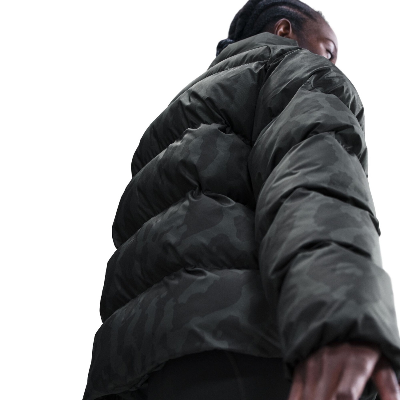 Imprimeul camuflaj pe toată suprafața oferă modelului un caracter urban dinamic și face geaca expresivă chiar și în ținute închise la culoare. Logo-ul Swoosh brodat pe piept adaugă un accent discret și autentic.