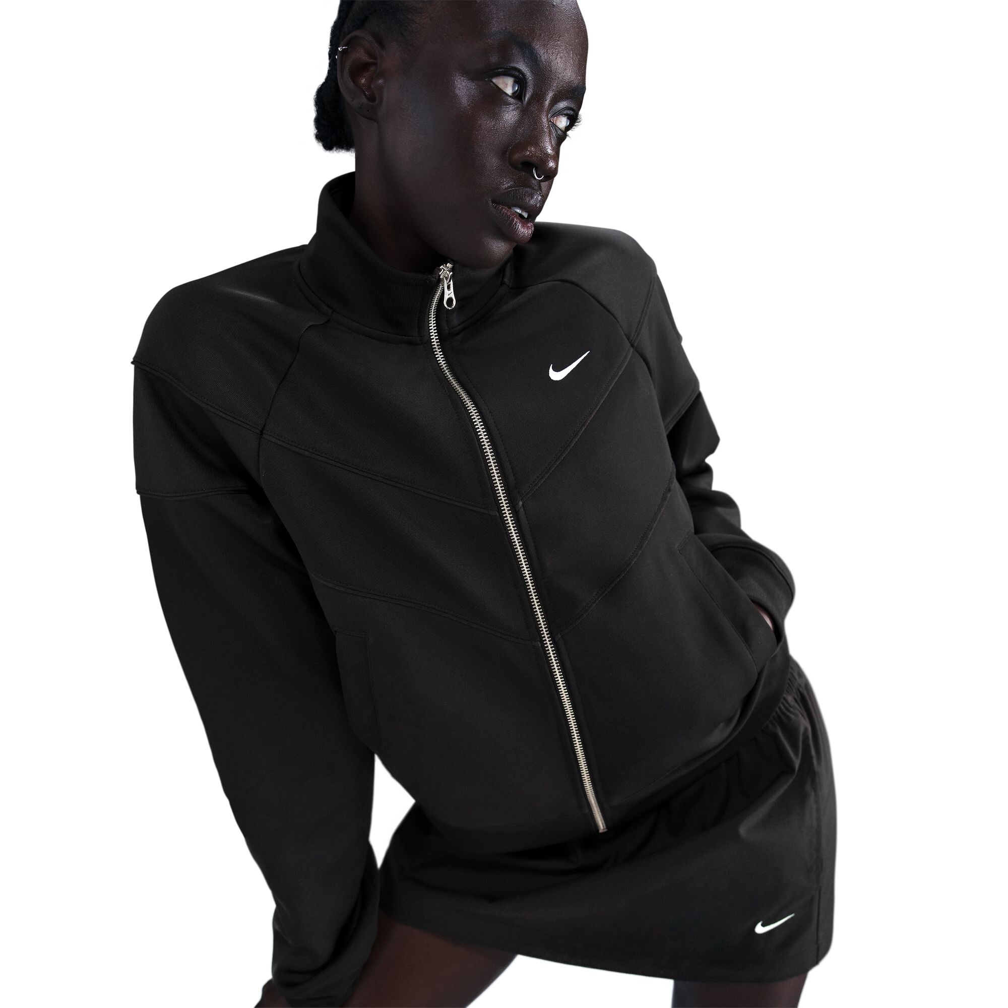 Țesătura elastică asigură o potrivire comodă și libertate de mișcare, iar mânecile și tivul cu nervuri ajută la menținerea formei și a unui aspect îngrijit. Fermoarul pe toată lungimea permite reglarea potrivirii și a stilului, adaptând modelul la diferite condiții meteo. Buzunarele laterale adaugă funcționalitate, iar logo-ul Swoosh brodat pe piept completează designul cu un accent autentic.