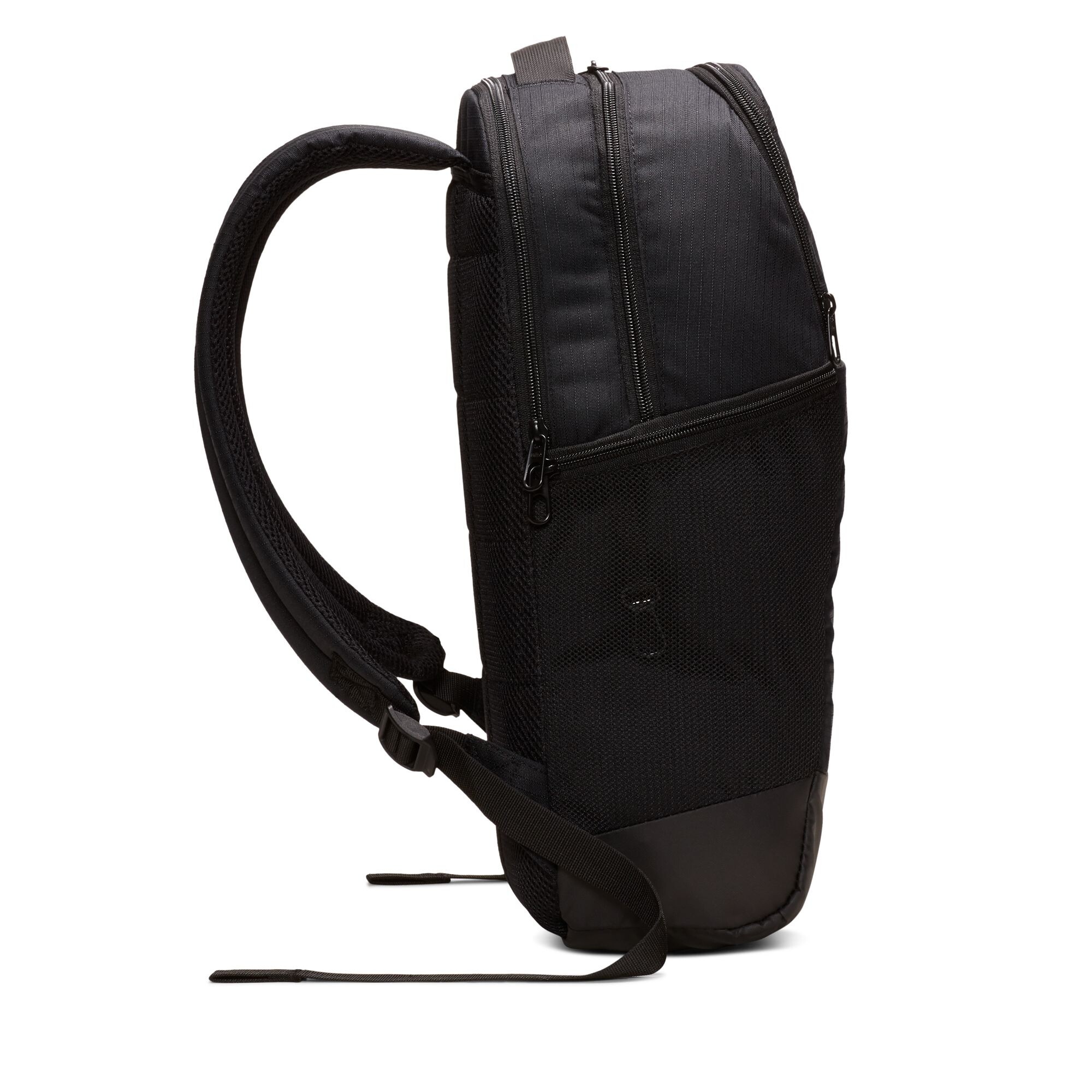 Compartimentul principal cu fermoar dublu oferă spațiu generos și depozitare sigură. Buzunarul frontal cu fermoar permite acces rapid la obiectele esențiale, precum telefonul, cheile sau cardul de acces. Buzunarele laterale din plasă sunt ideale pentru o sticlă de apă sau alte accesorii la îndemână. Compartimentul interior căptușit fixează în siguranță laptopul, iar buzunarul cu fermoar și căptușeală moale protejează căștile sau dispozitivele electronice de zgârieturi. Spatele și curelele de umăr reglabile, căptușite, asigură confort sporit chiar și atunci când rucsacul este complet încărcat. Baza cu finisaj hidrofug protejează conținutul de umezeală și prelungește durata de utilizare. Logo-ul Nike Swoosh de pe panoul frontal adaugă un accent sportiv distinctiv.