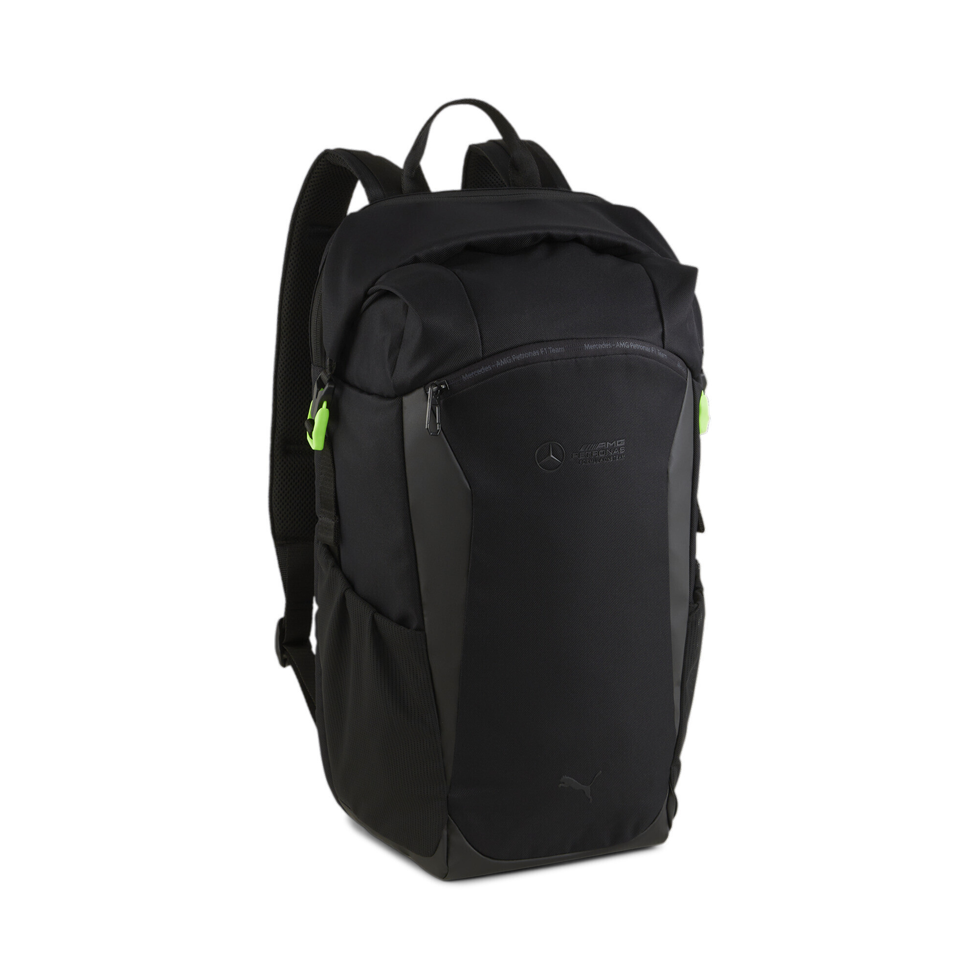 Spatele din plasă și curelele de umăr reglabile și căptușite asigură confort maxim, chiar și pentru perioade lungi de purtare. Mânerul de transport adaugă confort în situațiile în care rucsacul trebuie pur și simplu să fie ținut în mână. Aspectul accesoriului este evidențiat de logo-urile Mercedes-AMG Petronas F1® și Puma Cat cauciucate, care îl diferențiază de alte modele și accentuează simțul dvs. sfosticat al stilului.