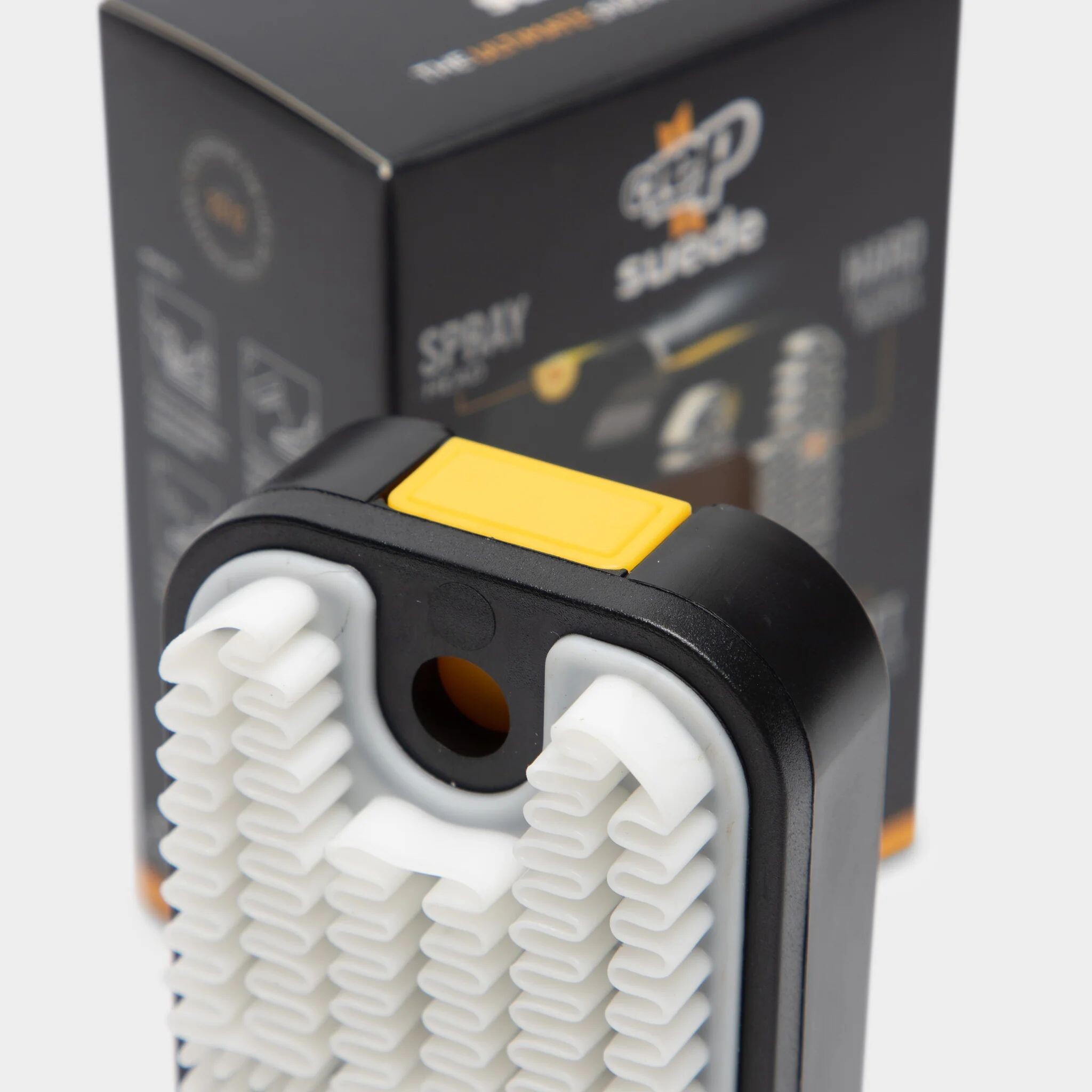 Formula unică de pulverizare pătrunde adânc în structura materialului, hrănindu-l și înmuiindu-l și redând textura naturală a pielii ăntoarse și nubucului. Nu numai că împrospătează aspectul, dar face și nuanța mai intensă, oferind încălțămintei un aspect îngrijit. Produsul funcționează în tandem cu o perie doi în unu: partea dură este concepută pentru piele întoarsă densă și texturată, iar partea moale este pentru zonele mai delicate care necesită o abordare deosebit de delicată. Acest duo asigură un rezultat impecabil - suprafața flaușată este revitalizată, încântând din nou cu textura sa mătăsoasă.