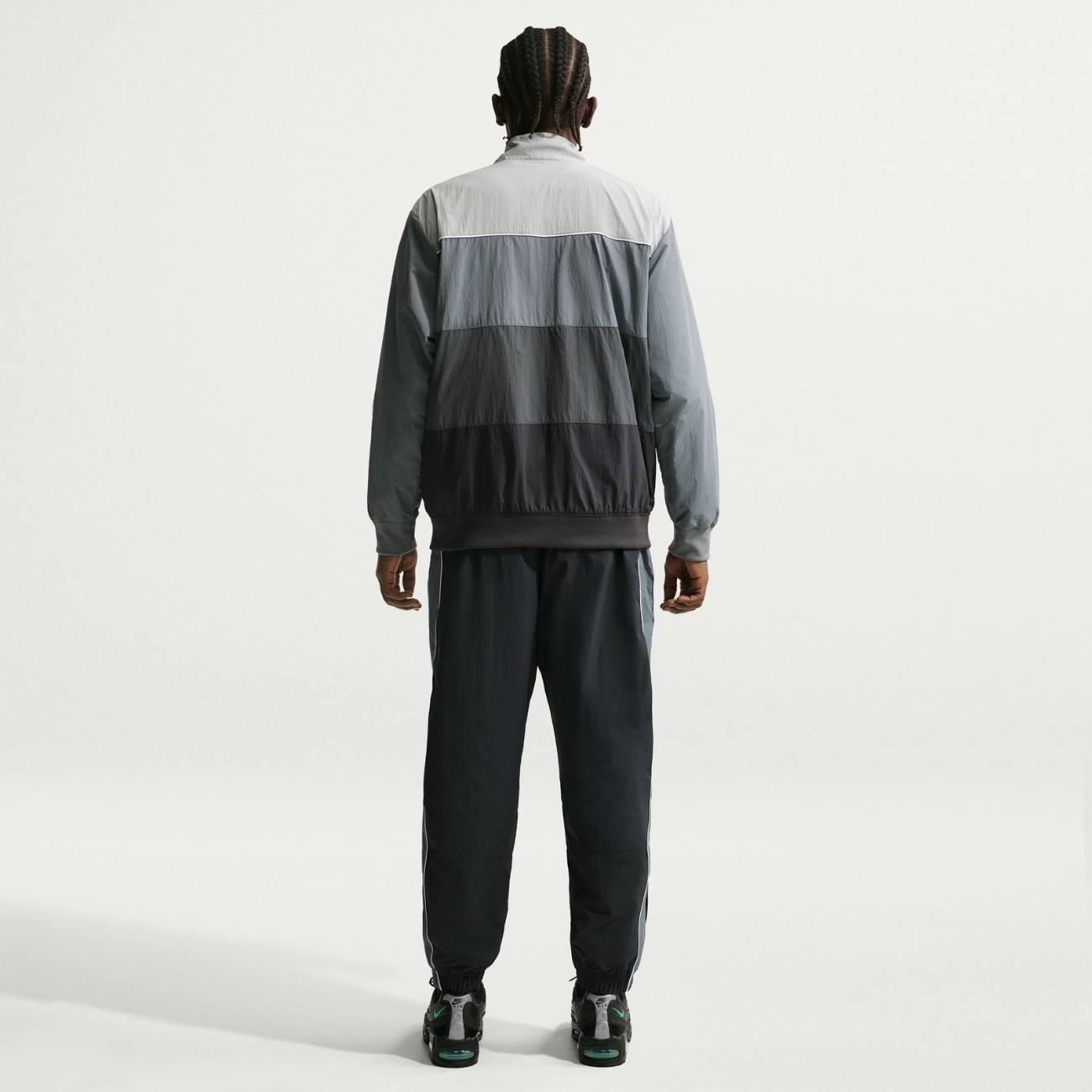 Эластичный пояс с утягивающим шнурком и фиксатором позволяет точно регулировать посадку, обеспечивая надёжную фиксацию. Боковые карманы на молнии дают возможность безопасно хранить необходимые мелочи, а эластичные манжеты с молниями на штанинах позволяют регулировать ширину и менять силуэт брюк вокруг обуви. Нашивка Air Max и вышитый логотип Nike Swoosh на бедре добавляют фирменные акценты и подчёркивают узнаваемый стиль бренда.