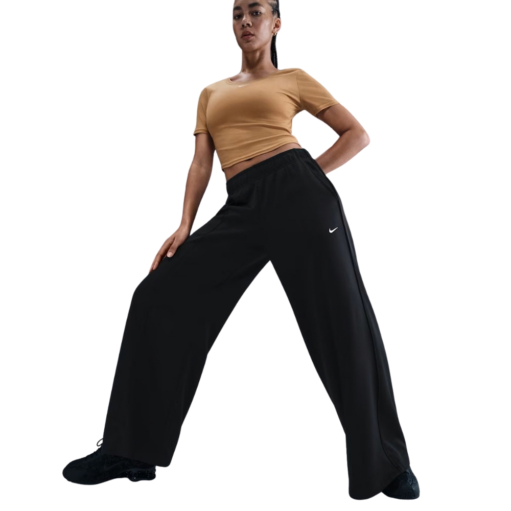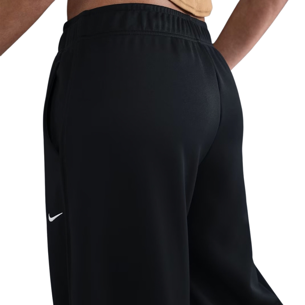 Эластичный пояс с внутренним шнурком позволяет легко регулировать посадку, подстраивая её под Ваши предпочтения, а практичные боковые карманы дают возможность всегда иметь под рукой необходимые мелочи – от телефона до ключей. Вышитый логотип Nike Swoosh добавляет стильный акцент и подчёркивает фирменный характер модели. Эти штаны отлично сочетаются с кроп-топами, худи или олимпийками, создавая модный и гармоничный образ.