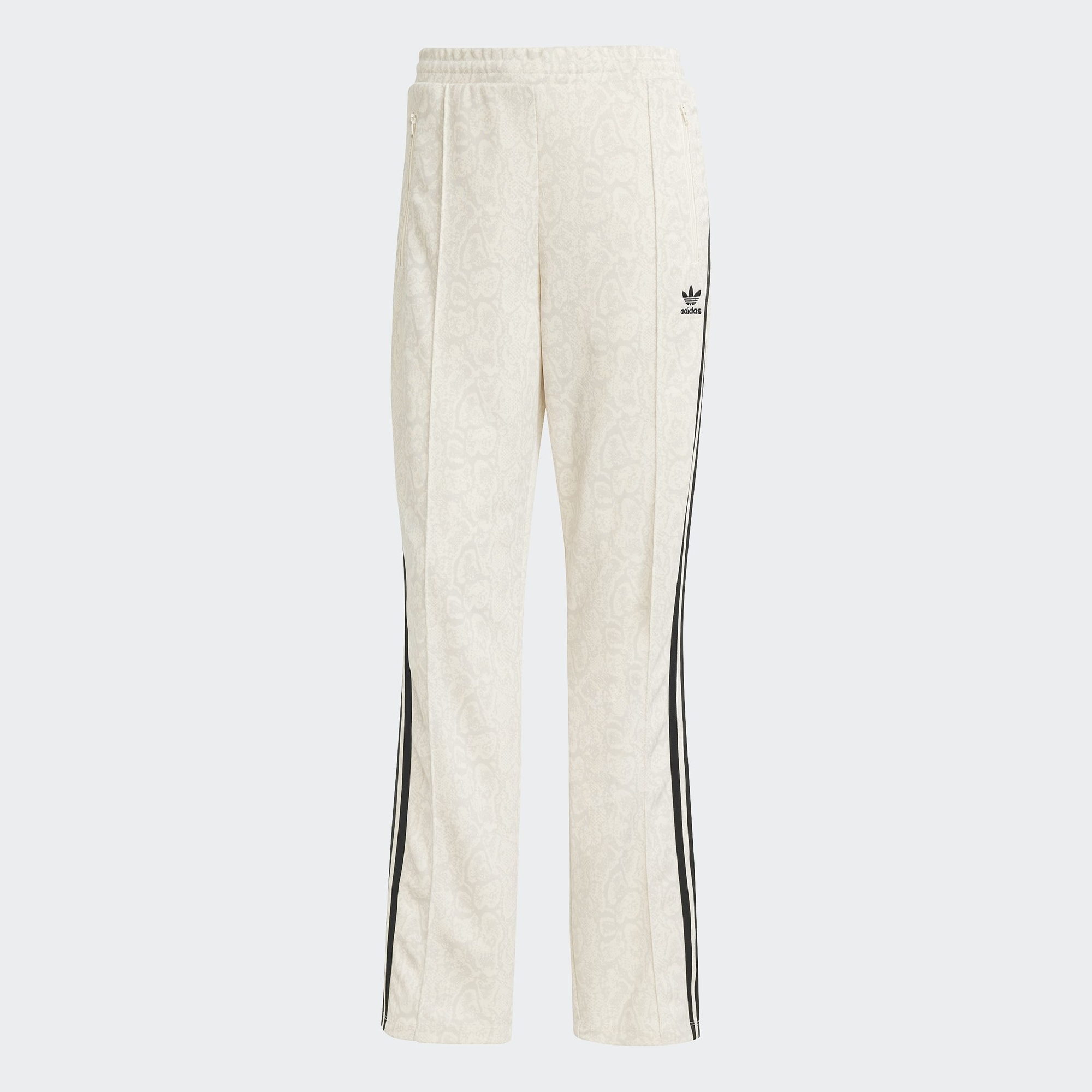 Ткань с принтом под змеиную кожу придаёт классическому спортивному стилю лёгкую дерзость и нотку женственности, сохраняя при этом его универсальность. Эластичный пояс с регулируемым шнурком позволяет настроить посадку под себя, а боковые карманы на молнии добавляют практичности, в них удобно хранить ключи, карту или наушники во время прогулок или встреч. Фирменные три полоски, идущие вдоль штанин, подчёркивают спортивное наследие adidas и добавляют динамики силуэту, а аккуратный вышитый логотип на бедре придаёт образу завершённость и узнаваемость.