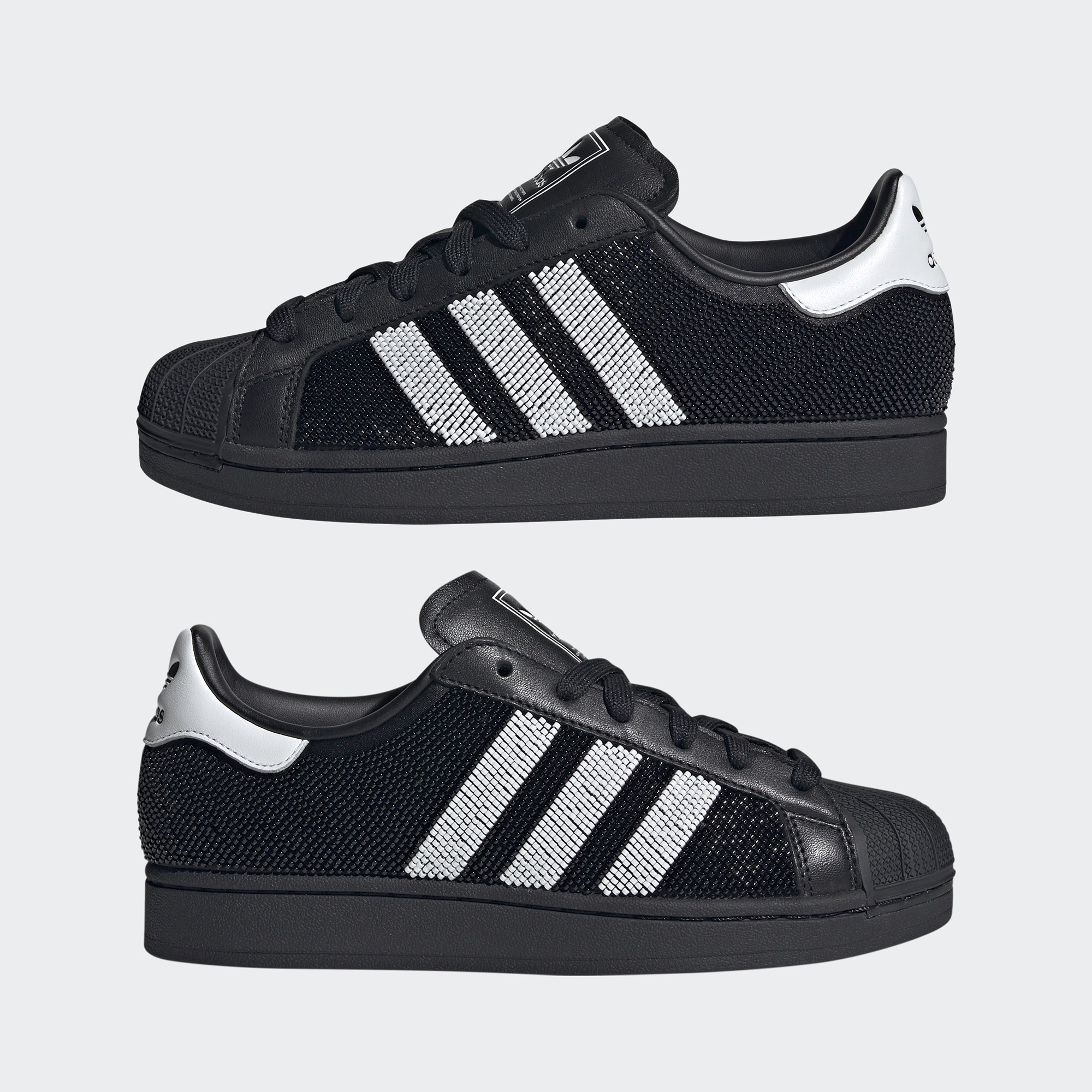 Женские кеды Superstar II - это современная интерпретация легендарной классики, которая давно стала символом уличной моды. Их дизайн создан для того, чтобы подчеркнуть Ваш стиль, сочетая в себе смелость, утончённость и спортивную элегантность. Верх кед выполнен из натуральной кожи, благодаря чему обувь не только выглядит эффектно, но и отличается высокой прочностью и долговечностью. Особого внимания заслуживает декоративное покрытие из бисера, придающее образу изысканности и необычного блеска.