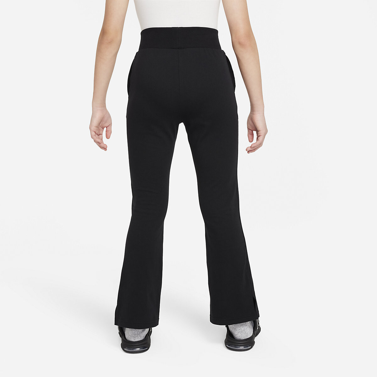 Облегающий крой и расклешенные от колена штанины придают брюкам форму колокола, позволяя вашей девочке свободно двигаться и демонстрировать свои любимые кроссовки.