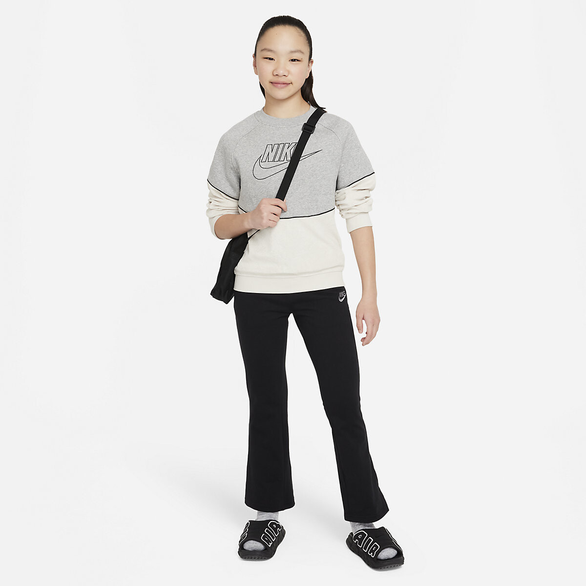 Добавьте немного изюминки в гардероб вашей девочки модными и удобными расклешенными штанами Nike Sportswear Flared LBR. Изготовленные из мягкого хлопка джерси, они обеспечат комфорт и свободу движений на протяжении всего дня.