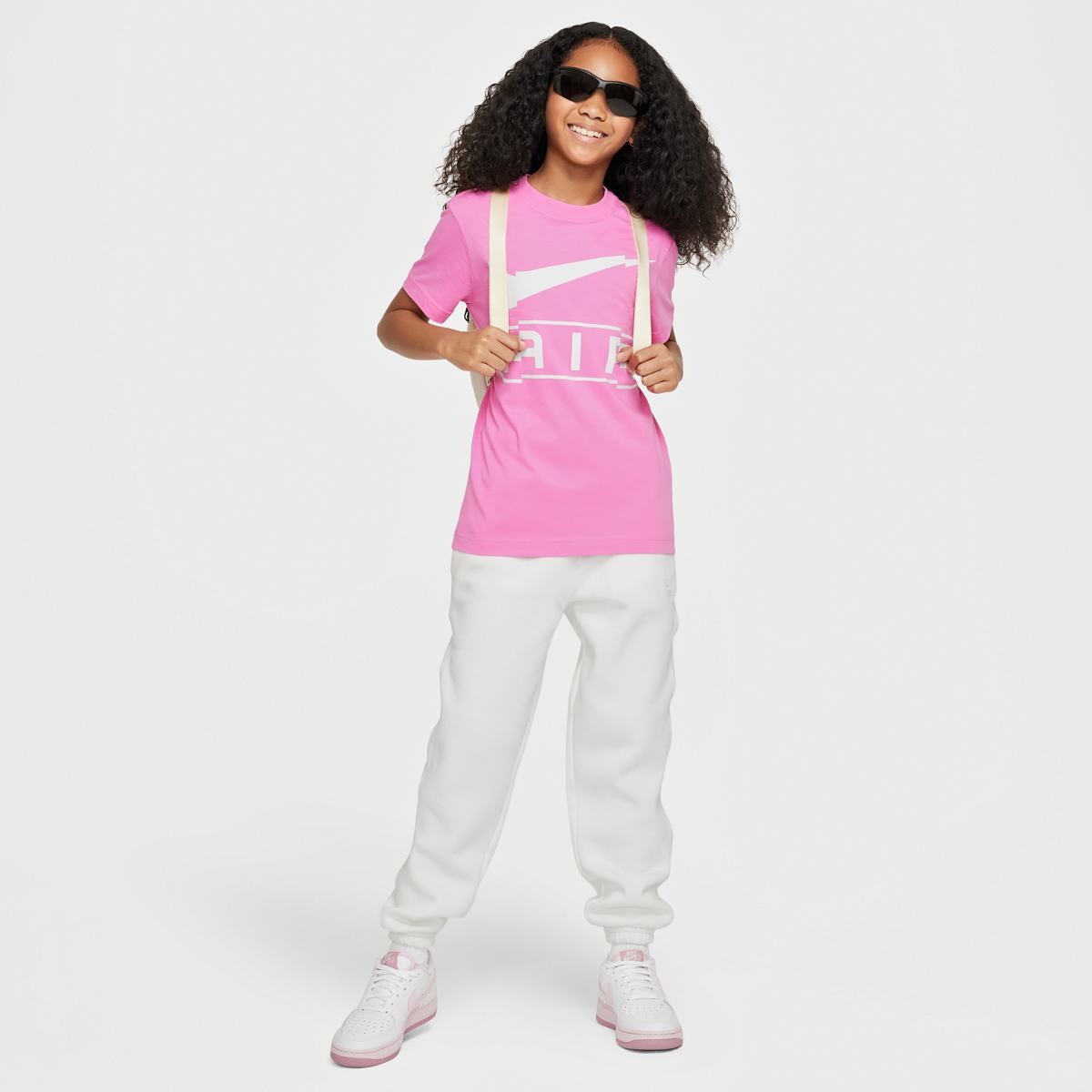 Выразительный и стильный, графический принт Nike Air станет ярким акцентом образа вашей девочки.