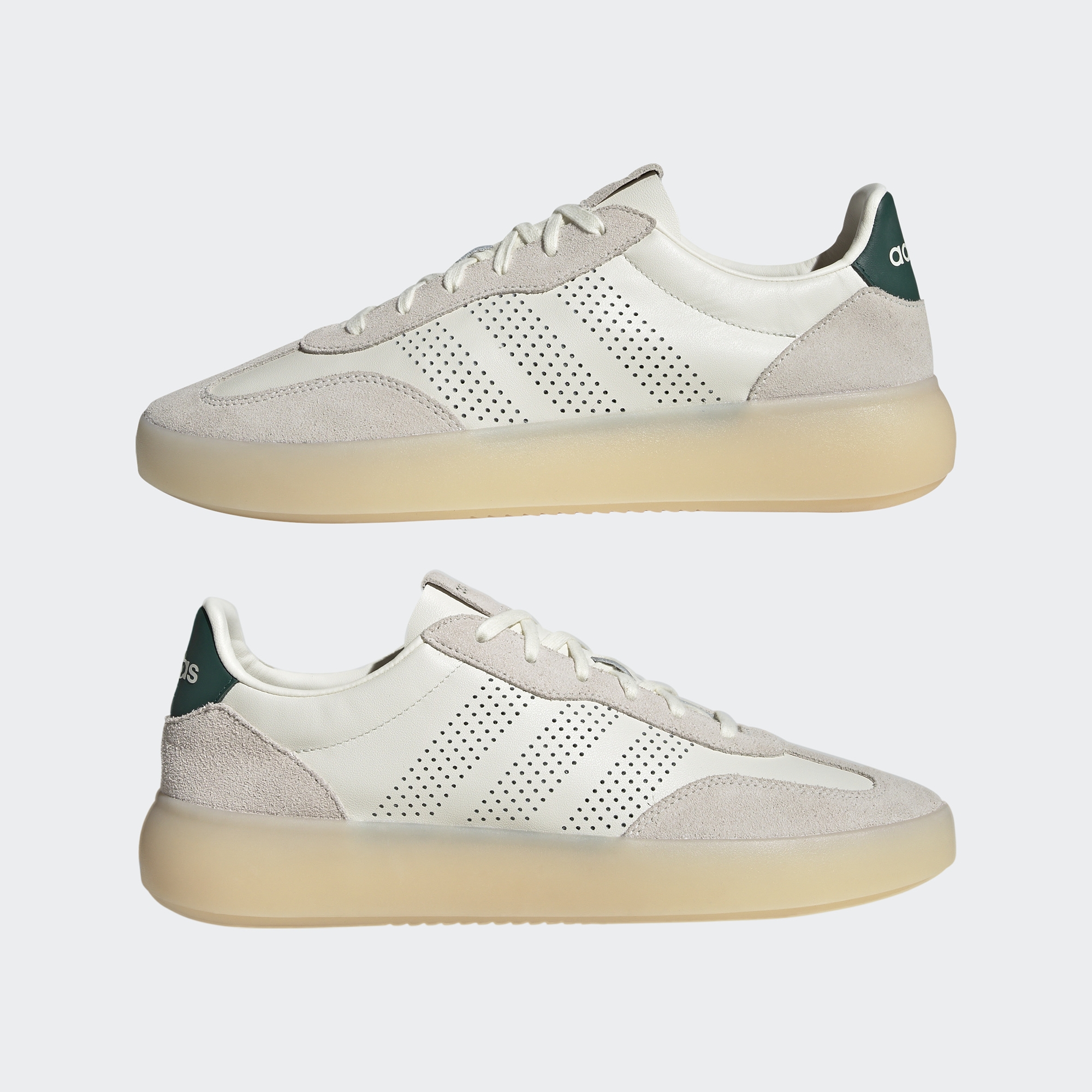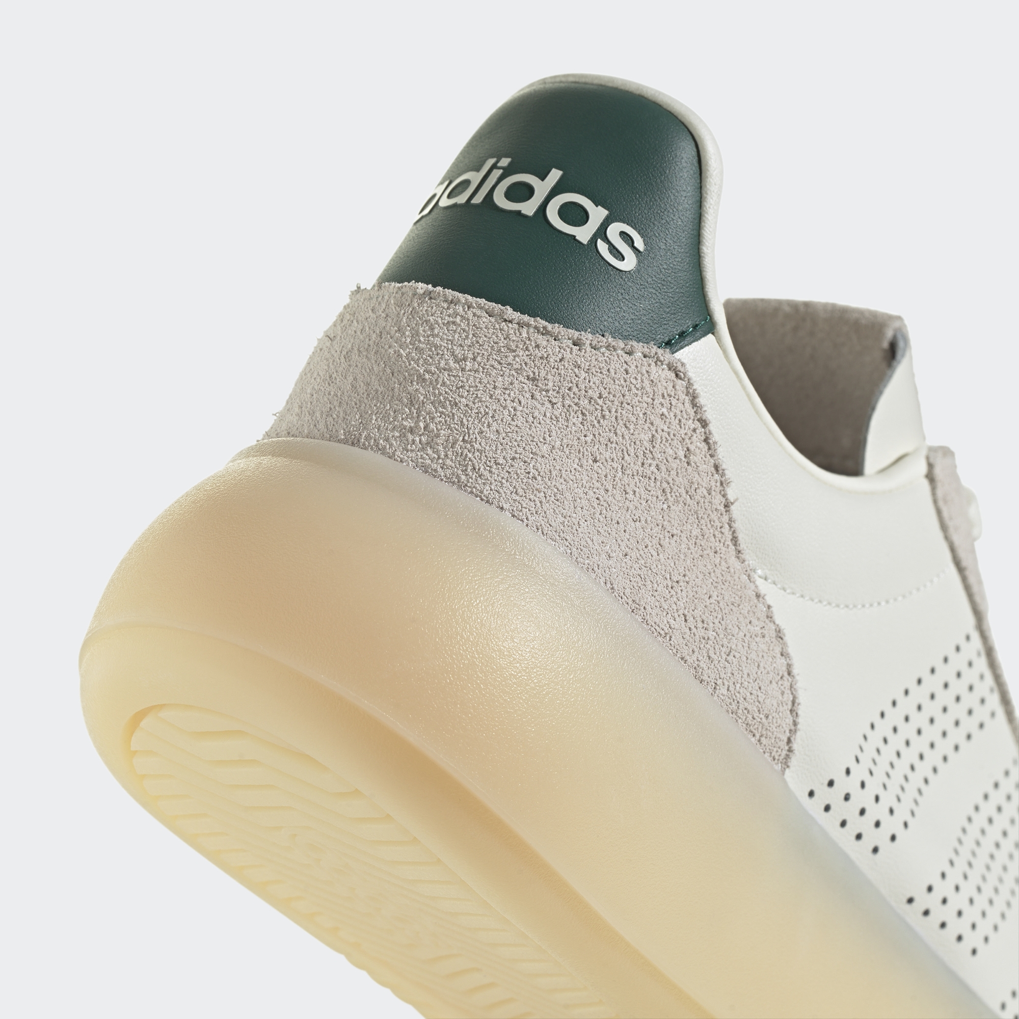 Верх из натуральной кожи высокого качества придаёт обуви изысканный вид, а замшевые вставки добавляют фактурности и делают образ более выразительным. Знаковый Т-образный мысок отсылает к легендарным силуэтам adidas, но при этом модель выглядит по-настоящему современной благодаря лаконичной форме и продуманным деталям.