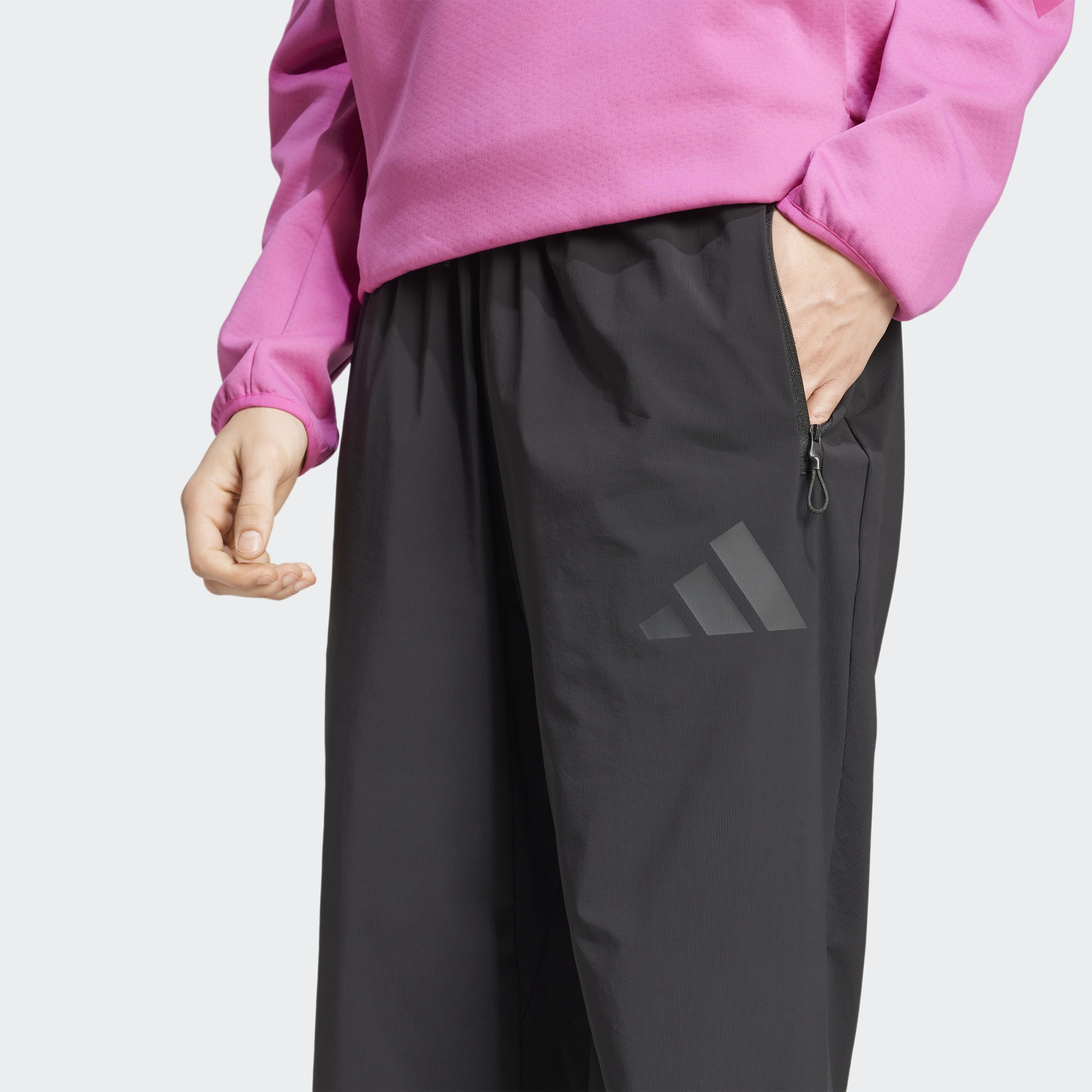 The adidas Z.N.E. Woven men's trousers are designed for those who choose freedom of movement and thoughtful comfort in any situation. Thanks to the lightweight yet durable ripstop fabric, this model confidently copes with the active pace of everyday life, whether it's a walk around the city, supporting your favourite team or simply relaxing. The elastic waistband with adjustable drawstring ensures a secure and comfortable fit, while the side zip pockets allow you to keep all your essentials close at hand, from your phone to your headphones, without worrying about the safety of your belongings.