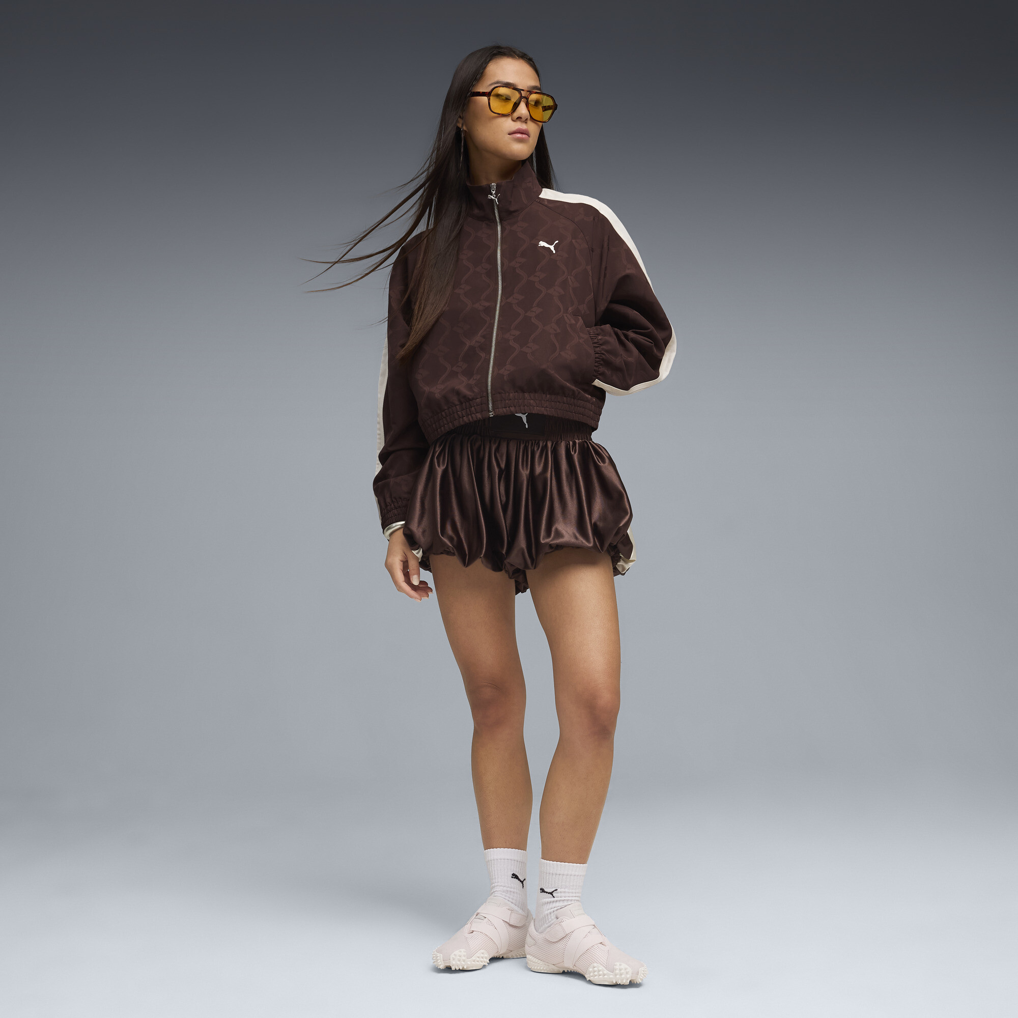 Женская олимпийка PUMA T7 Jacquard Woven - это современное воплощение спортивного стиля с акцентом на выразительной фактуре. Жаккардовый материал с деликатным узором по всей поверхности создаёт выразительный визуальный эффект, добавляя глубину даже монохромному дизайну и подчёркивая ДНК культовой линейки T7.